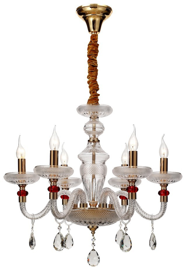 Подвесная хрустальная люстра WE181.06.303 немецкого производителя Wertmark из коллекции LUDMILA исполнена в классическом стиле. Арматура светильника выполнена из стекла и металла золотого и красного цветов. Поверхность арматуры глянцевая. Плафон отсутствует. Декоративные элементы выполнены из прозрачного хрусталя. Осветительный прибор рассчитан на освещение пространства площадью 12 кв. м. Тип цоколя используемых ламп E14. Производитель рекомендует использовать лампы мощностью не более 40 Вт. Суммарная мощность светильника составляет 240 Вт. Лампочки в комплект не входят. Защита от попадания влаги и пыли внутрь изделия не предусмотрена. Рекомендуем к применению в гостиной, спальне.