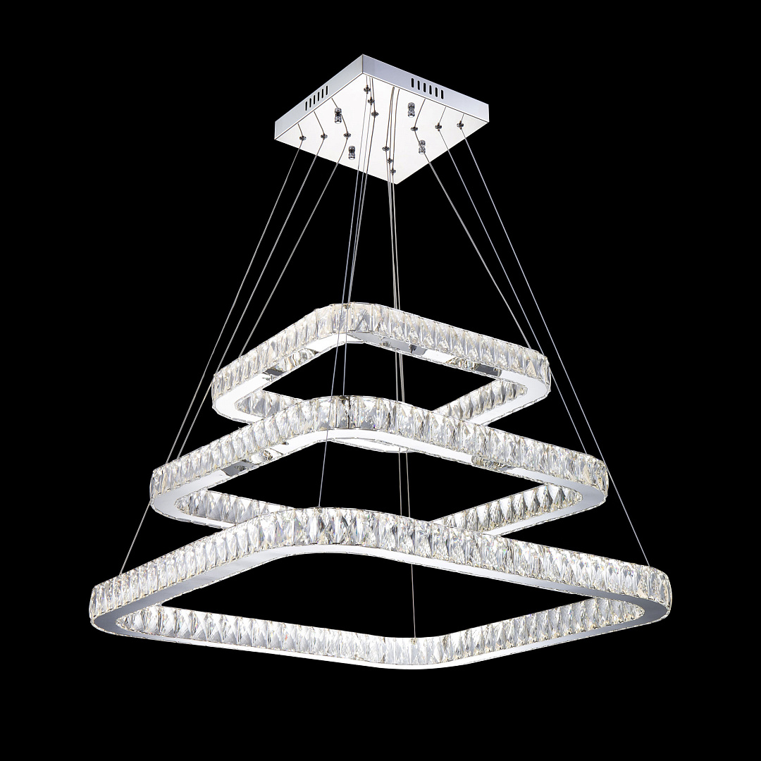 Светодиодная подвесная люстра EL336P100 датского производителя CITILUX из коллекции Granda выполнена в современном стиле. Арматура светильника выполнена из металла цвета хром. Поверхность арматуры глянцевая. Плафон изготовлен из хрусталя прозрачного цвета, имеет квадратную плоскую форму и прозрачную поверхность. Направлен вниз. Осветительный прибор рассчитан на освещение пространства площадью 32 кв. м. Тип цоколя используемых ламп LED (Встроенный светодиодный модуль). Производитель рекомендует использовать лампы мощностью не более 200 Вт. Суммарная мощность светильника составляет 200 Вт. Лампочки входят в комплект. Защита от попадания влаги и пыли внутрь изделия не предусмотрена. Имеется пульт ДУ. Рекомендуем к применению в гостиной, кабинете, прихожей, спальне.