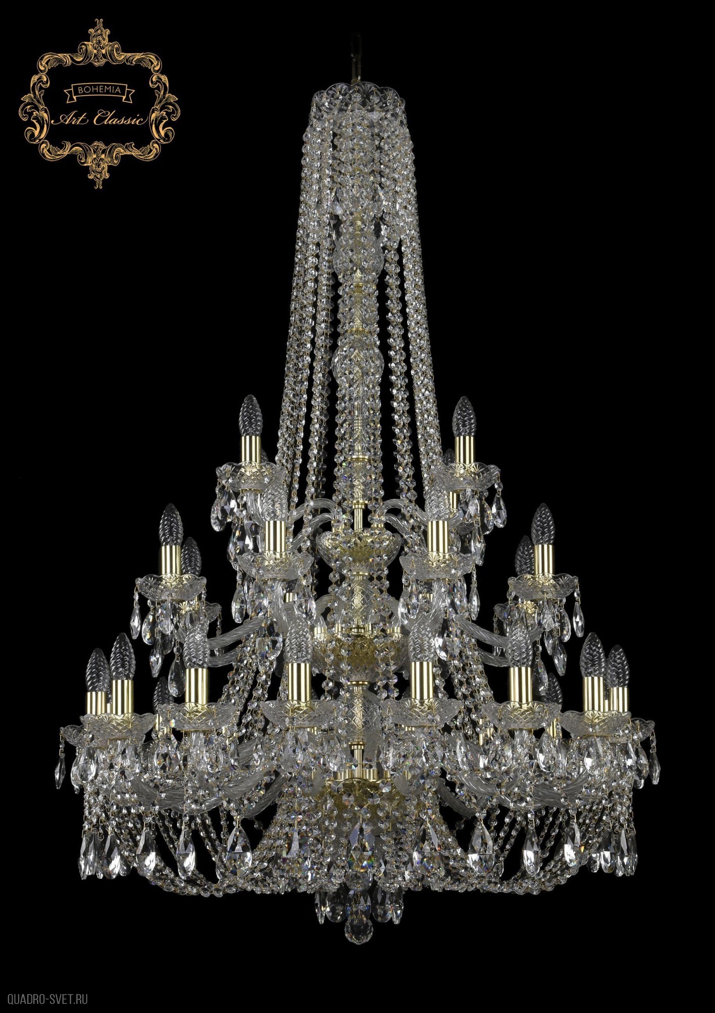 Большая хрустальная люстра Bohemia Art Classic 11.21.16+8+4.300.3d.h-128.Gd.Sp