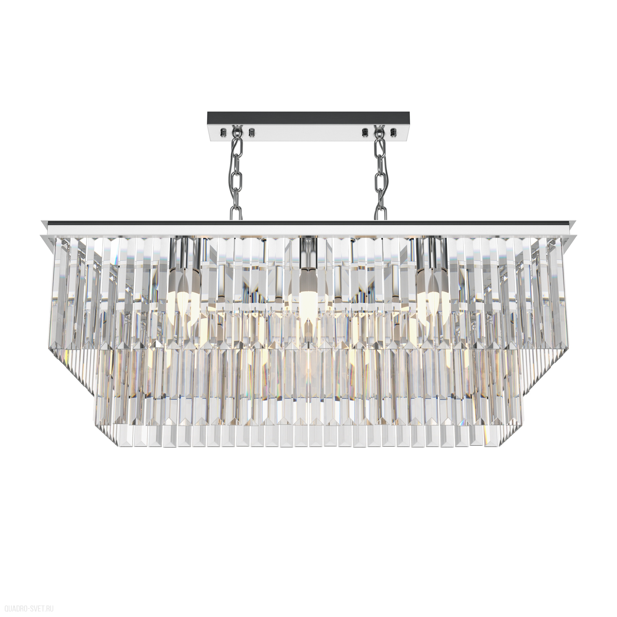 Арматура из металла в трех оттенках: латунь, хром, золото. Многоярусный декор. Подвески: прозрачное (арматура – хром, латунь) и янтарное (арматура – золото) стекло. Высота подвесных моделей регулируется.