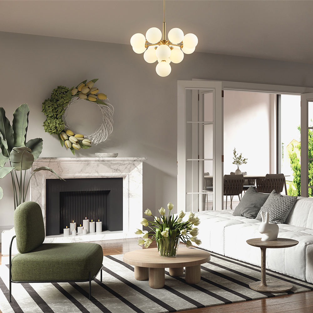 Арматура – металл, цвет – латунь. Стеклянные плафоны-сферы выполнены в двух оттенках: белый матовый и дымчатый, который присутствует только в настенно-потолочной версии. Округлые и плавные линии – беспроигрышное сочетание для современных интерьеров. Настенные бра можно использовать как для общего освещения на потолке, так и для зонального настенного. Источник света – лампа с цоколем G9.