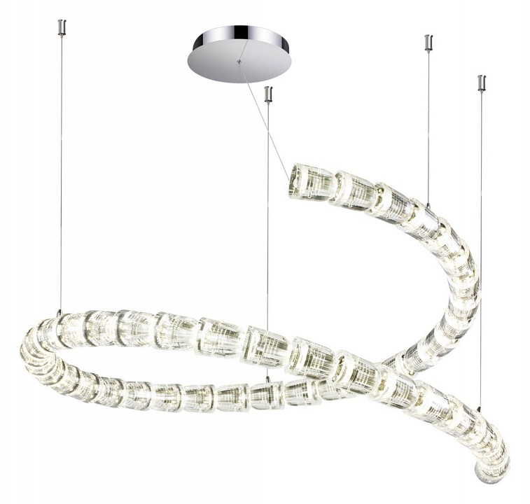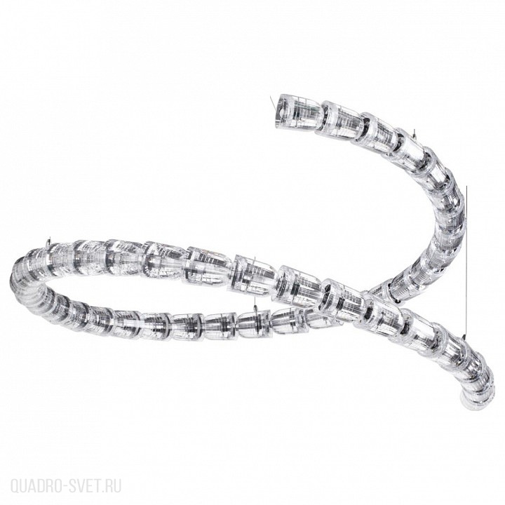 Светодиодная большая люстра диаметром 1 м линии Serpa в виде спирали поражает своей оригинальностью и новизной. Необычные акриловые плафоны, соединяясь в одну линию, создают эффект кожи змеи, и,изящно изгибаясь, образуют легкую и невесомую форму. При помощи тросов можно изменять высоту люстры. Люстра станет великолепным украшением гостевого зала в стиле модерн, хайтек или неоклассика.
