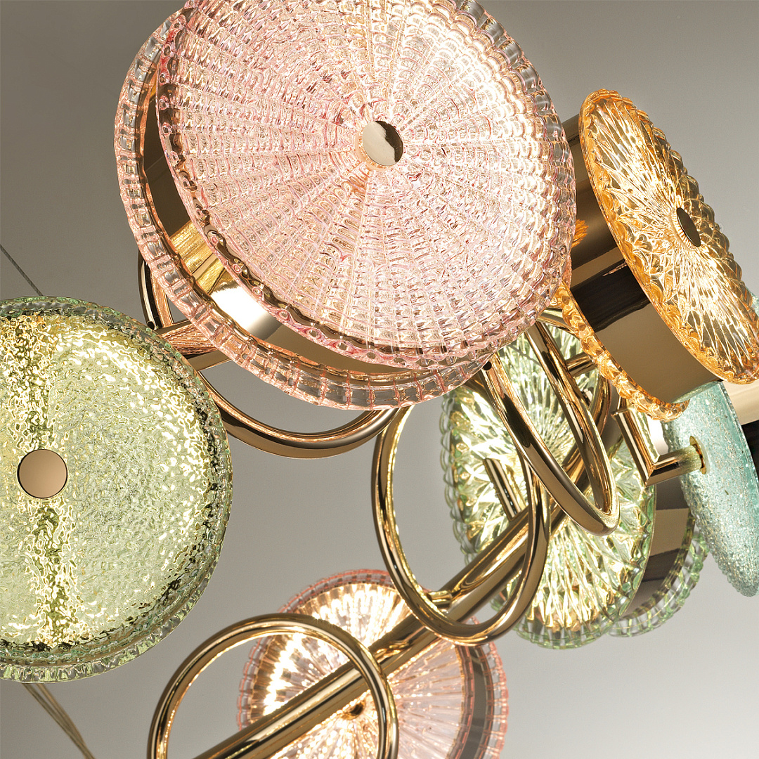 Линия светильников Caramella получила своё название благодаря сходству с карамельными конфетами. В ней сочетаются разноцветное стекло и золотой глянцевый метал ,разнообразные паттерны стёкол и современные LED источники света. Светильники Caramella прекрасно впишутся как в современные, так и в классические интерьеры благодаря своему изящному дизайну.