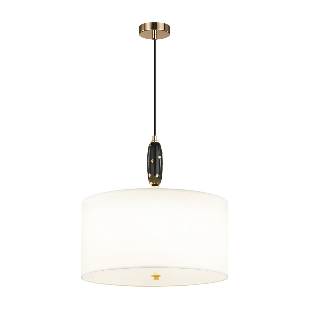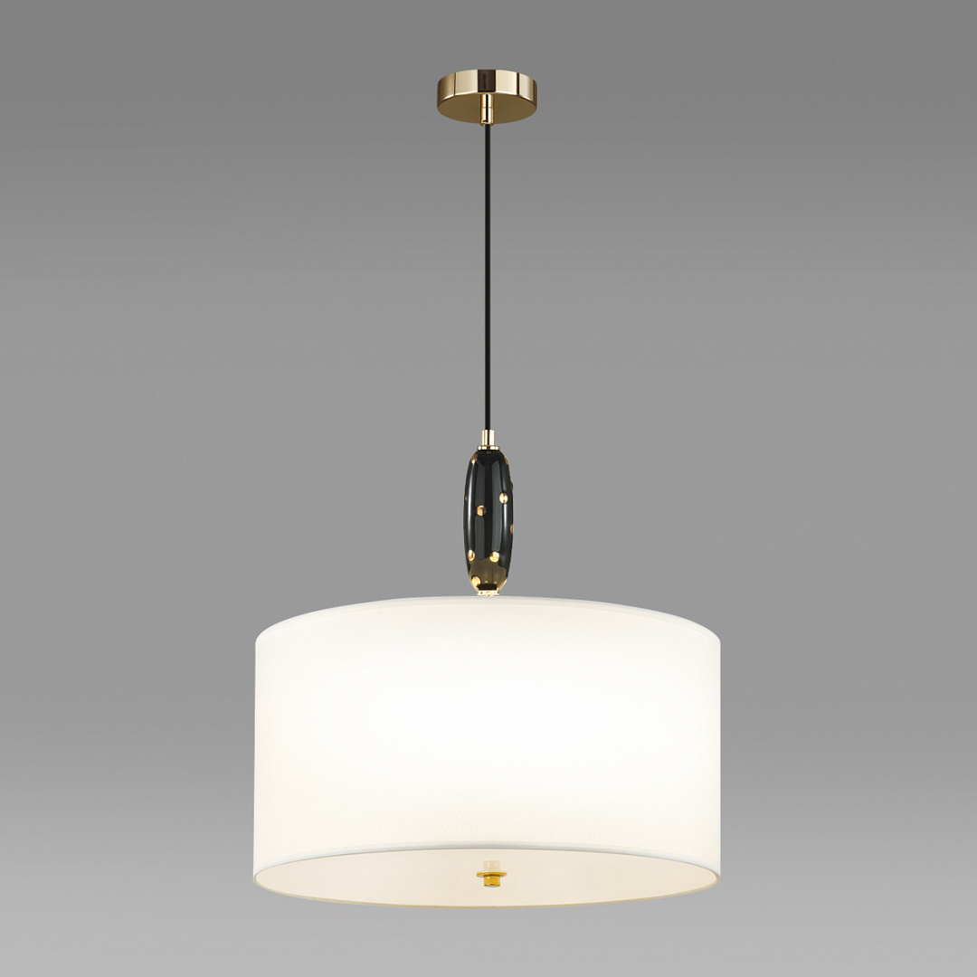 Черная глянцевая керамика ручной работы линии Pollen будто усыпана золотой пыльцой. Подвесной абажурный светильник с матовым рассеивателем включает 5 ламп, что позволяет использовать его в качестве основного освещения. Лаконичная форма малого подвеса, настольных ламп и бра будет отлично смотреться в самых разнообразных стилях интерьера — от неоклассиски и эклектики до модерна и поп-арта.