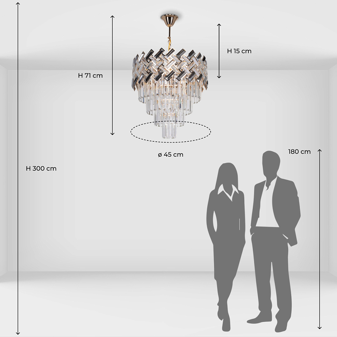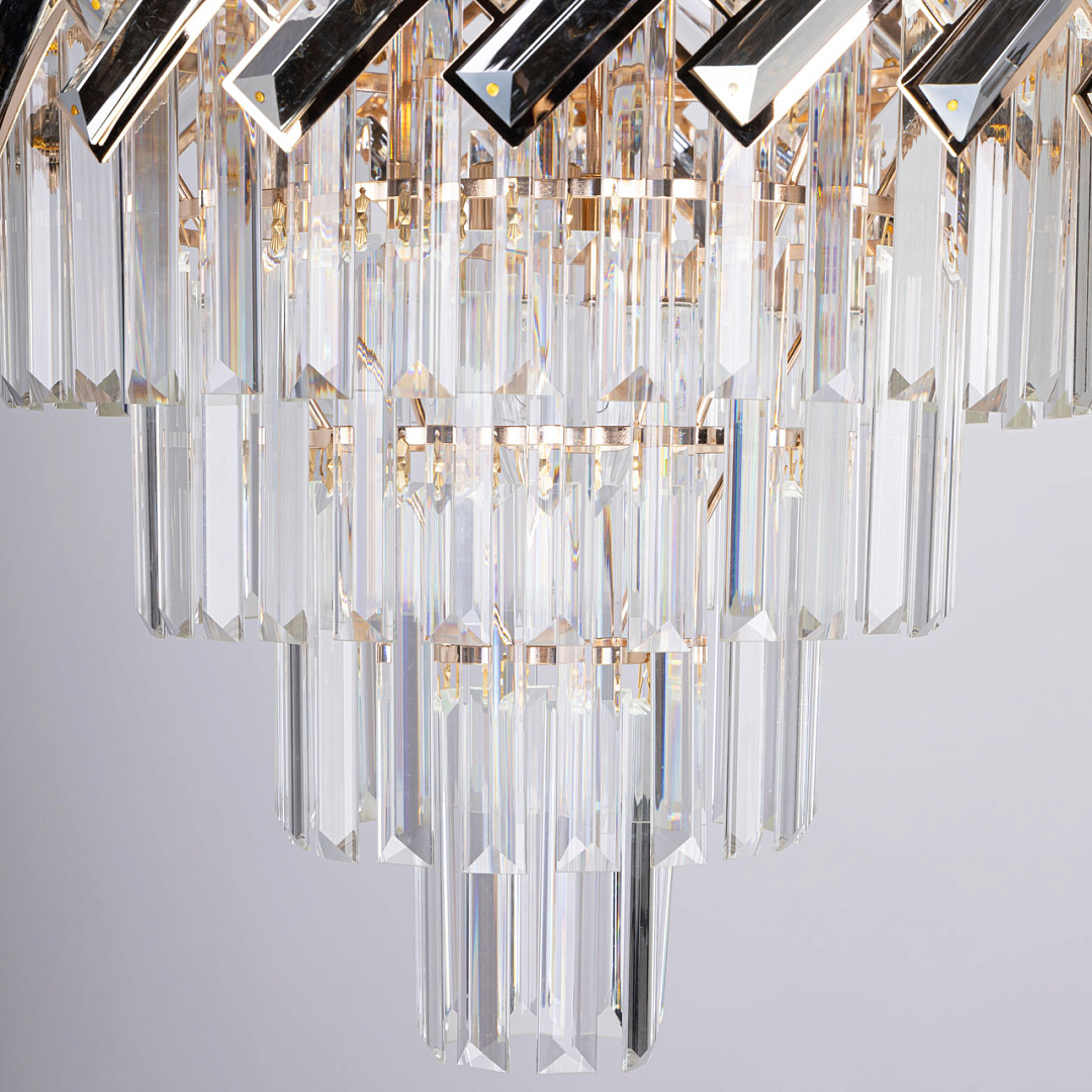 Оригинальный декор верхнего яруса хрусталя привлекает к себе внимание.Классический дизайн подвесной люстры сохраняет свою актуальность.Хрусталь исторической прямоугольной формы создает красивую игру света.Возможность регулировать комфортную высоту.Заменяемые источники света удобны в эксплуатации.