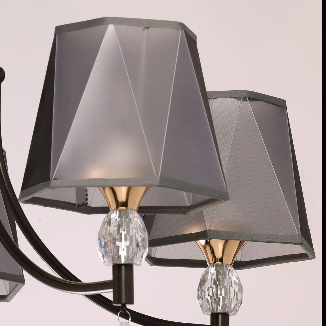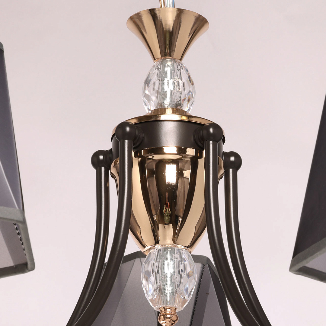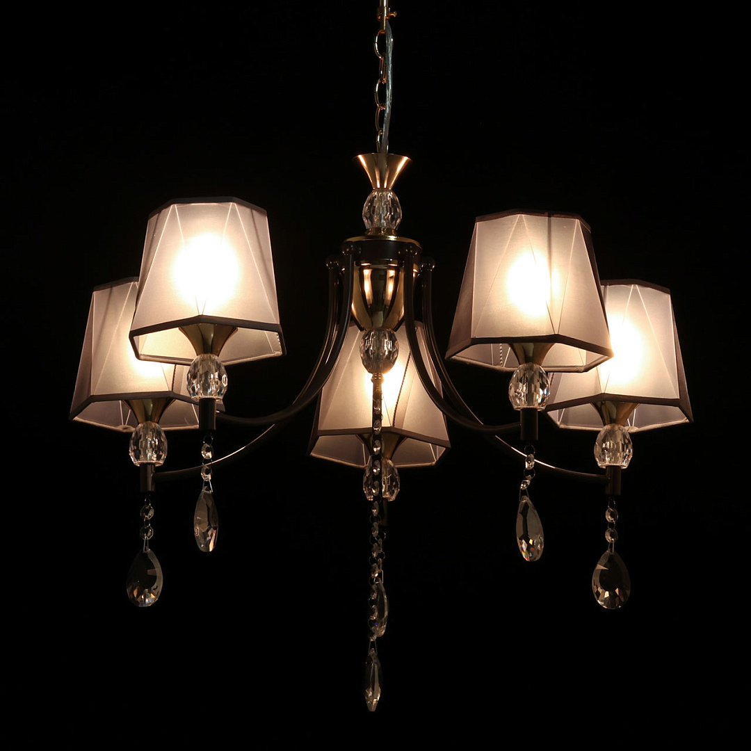Теплый кофейный цвет основания люстры создает уютную атмосферу. Элементы в цвете золота придают дизайну люстры дополнительную изысканность. Текстильные абажуры создают мягкий комфортный свет. Термостойкий акрил повышает качество люстры и продлевает срок ее службы. Хрустальный декор эффектно подчеркивает игру света и отражения. Возможность устанавливать комфортную высоту. Заменяемые источники света удобны в эксплуатации.