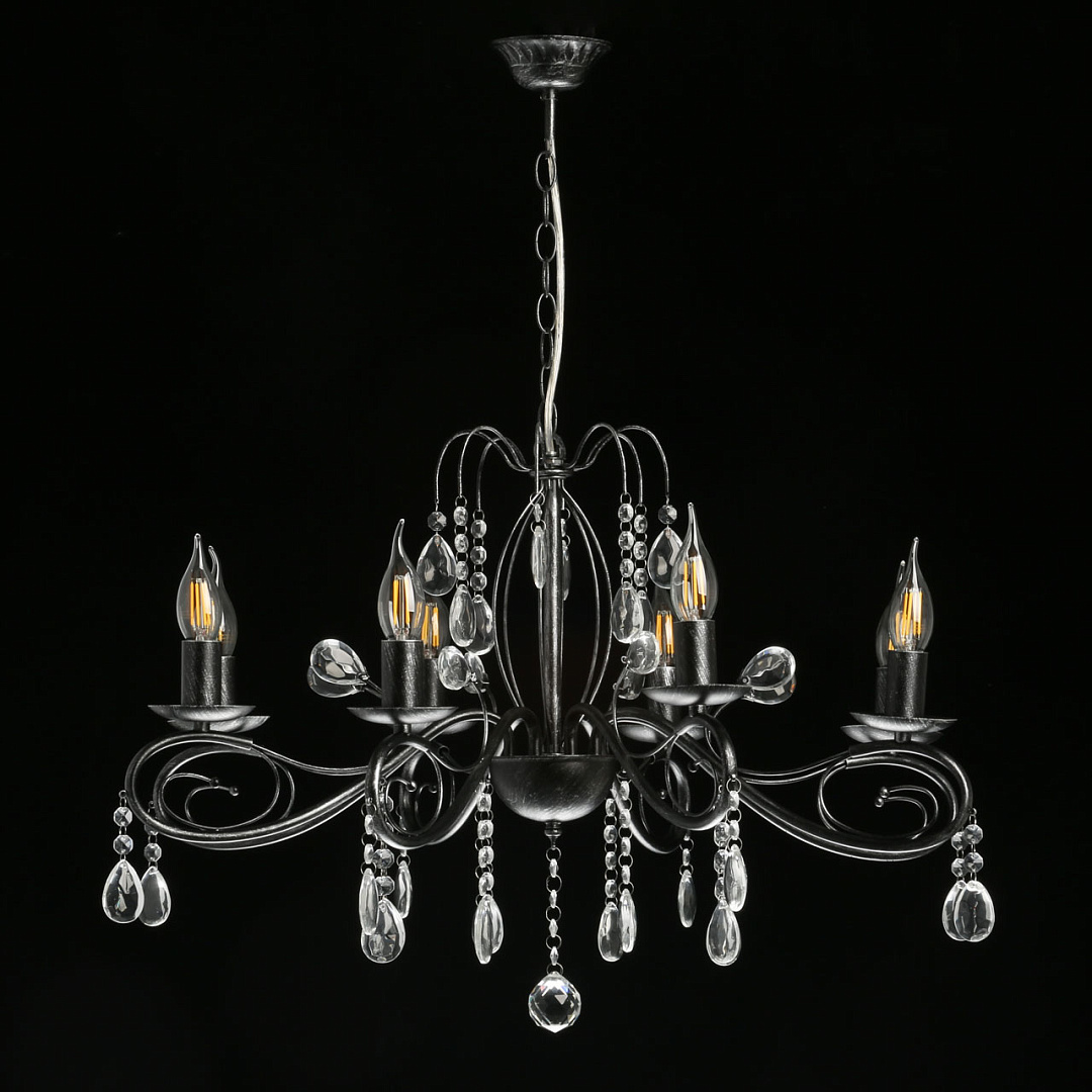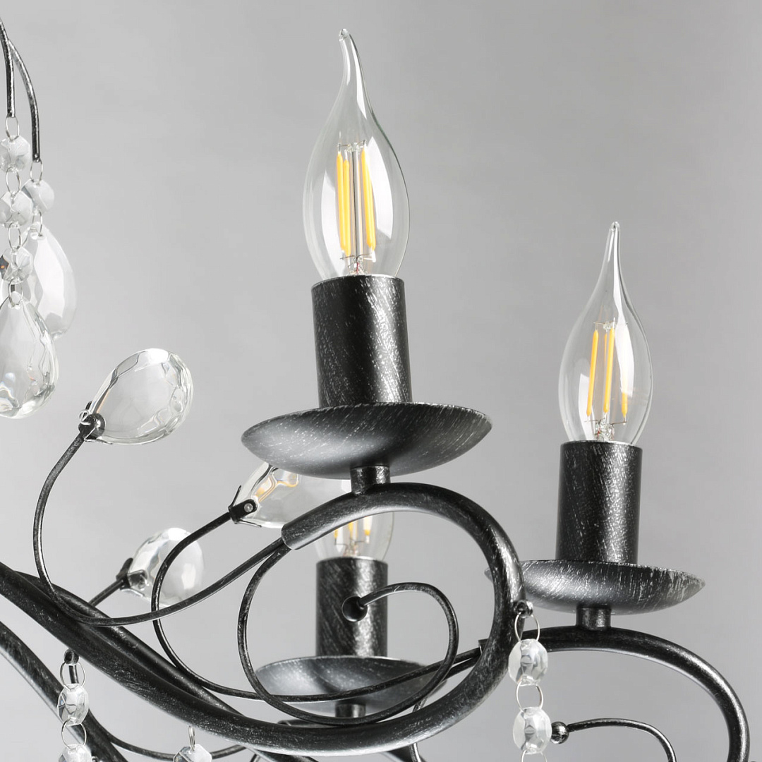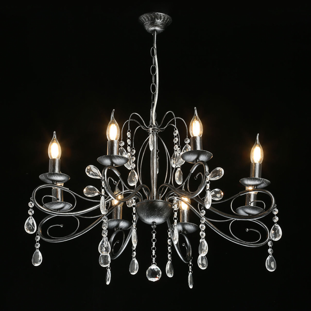 Классический дизайн подвесной люстры остается актуальным.Черный цвет основания с серебряной патиной делает подвесную люстру интерьерообразующей.Открытые источники света хорошо освещают все пространство комнаты.Заменяемые лампы удобны в эксплуатации.