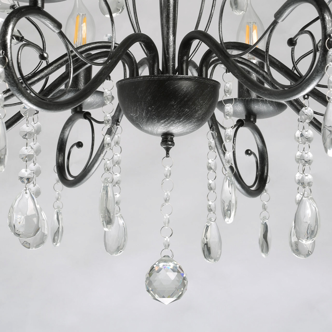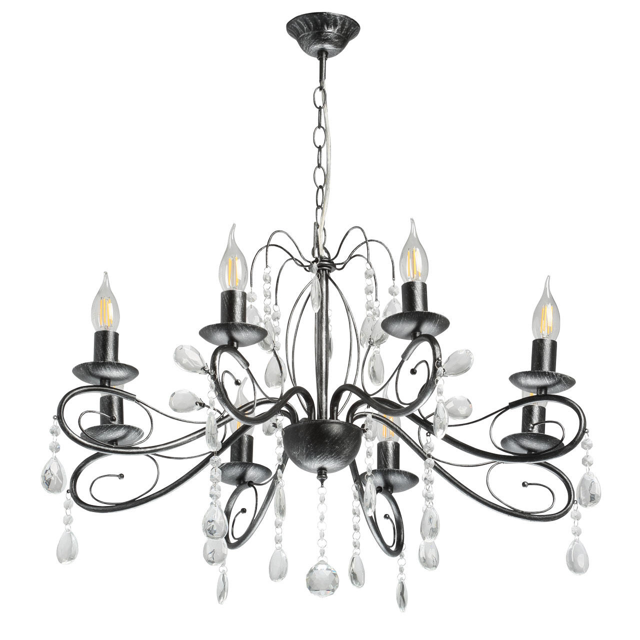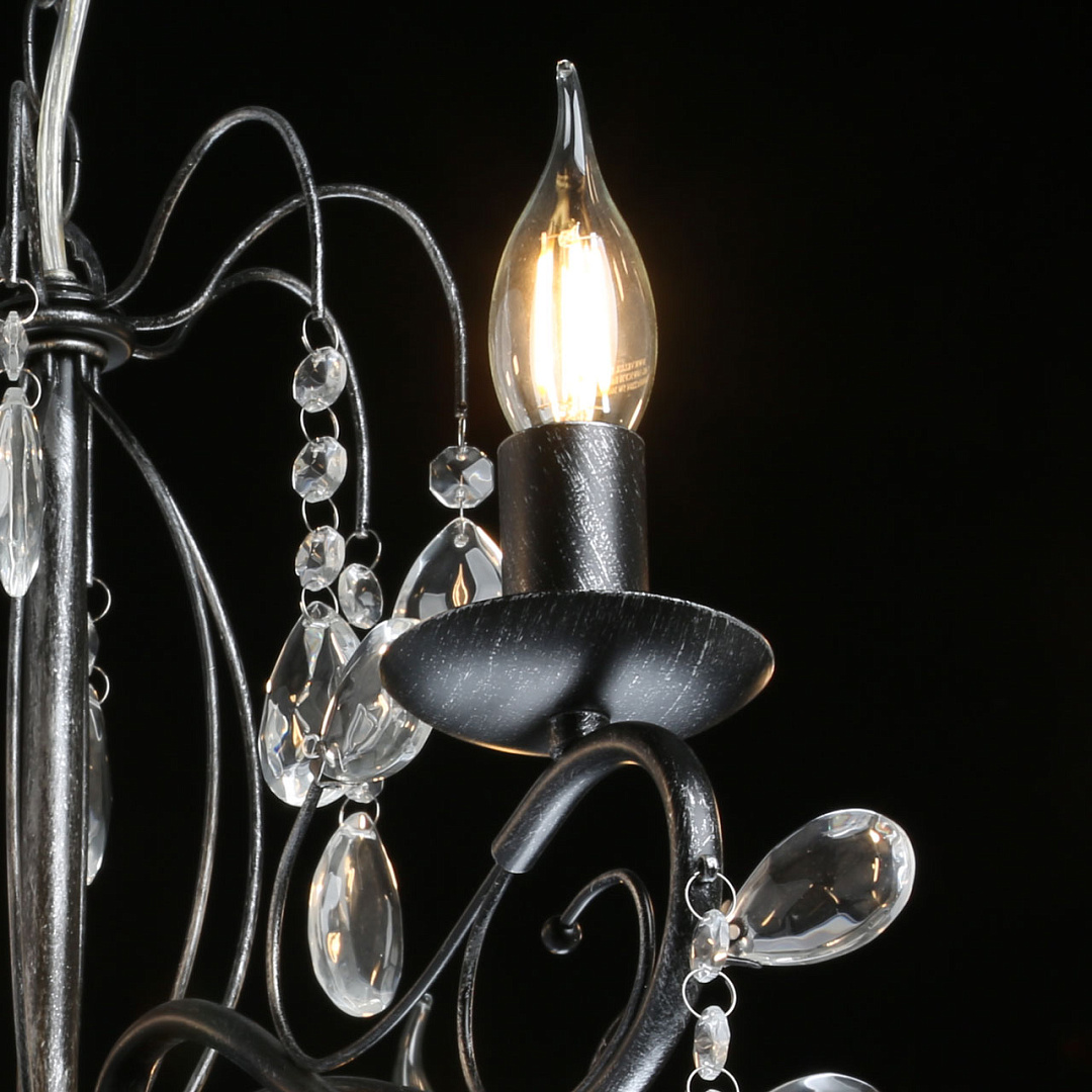 Классический дизайн подвесной люстры остается актуальным.Черный цвет основания с серебряной патиной делает подвесную люстру интерьерообразующей.Открытые источники света хорошо освещают все пространство комнаты.Заменяемые лампы удобны в эксплуатации.