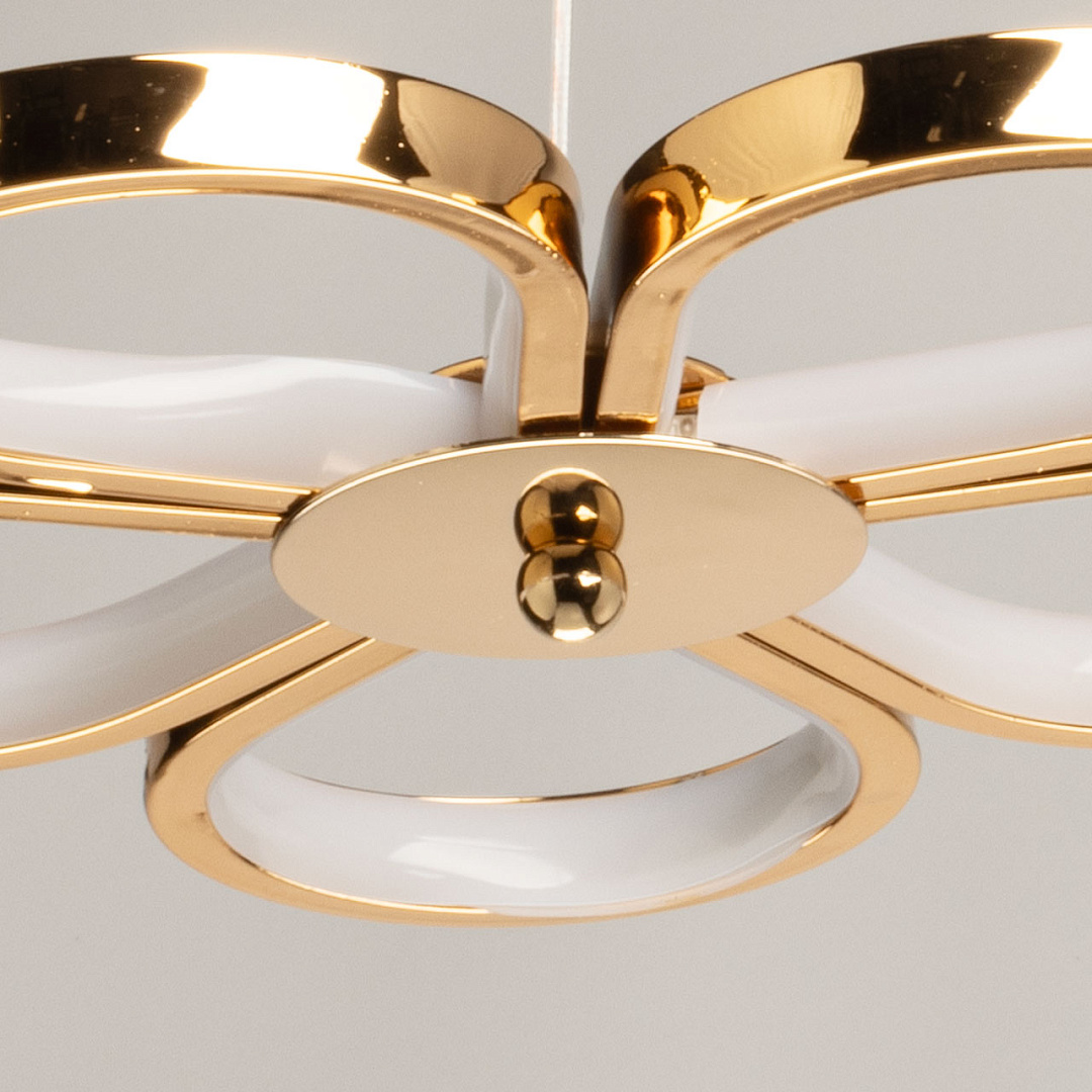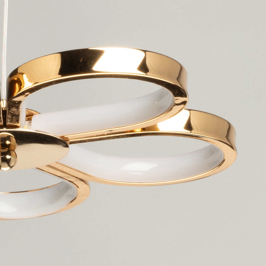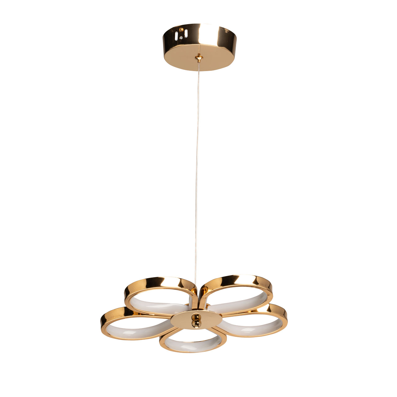 Светильник Мадлен выделяется своим изысканным дизайном, который сочетает в себе элементы современности и элегантности. Его основание выполнено из металла, гальванизированного в цвет золота. Золотистый оттенок гармонично сочетается с различными цветами и текстурами, что позволяет легко интегрировать светильник в интерьер.Плафон светильника состоит из пяти «лепестков», которые создают уникальную форму и обеспечивают равномерное распределение света. Наружная поверхность лепестков выполнена из металла, что придаёт им прочность и долговечность, а внутренняя часть сделана из силикона, что способствует мягкому рассеиванию света. Это решение не только эстетично, но и функционально, так как позволяет избежать резких теней и создает приятное освещение.Светодиодные технологии, используемые в светильнике Мадлен, обеспечивают высокий уровень энергоэффективности и долговечности. Встроенные светодиоды обеспечивают достаточный световой поток для освещения площади до 12 м², что делает этот светильник идеальным выбором для небольших комнат, кухонь или зон отдыха. Цветовая температура 4000 K создает нейтральный, естественный свет, который способствует комфортной атмосфере и не утомляет глаза.Светильник Мадлен прекрасно вписывается в различные стили интерьеров. Он станет отличным дополнением для лофт-апартаментов, где сочетаются индустриальные элементы и современные акценты. Также его можно использовать в интерьере в стиле хай-тек, который акцентирует внимание на современных технологиях и минимализме. Регулируемый подвес позволят использовать светильник Мадлен как локальное или основное освещение.