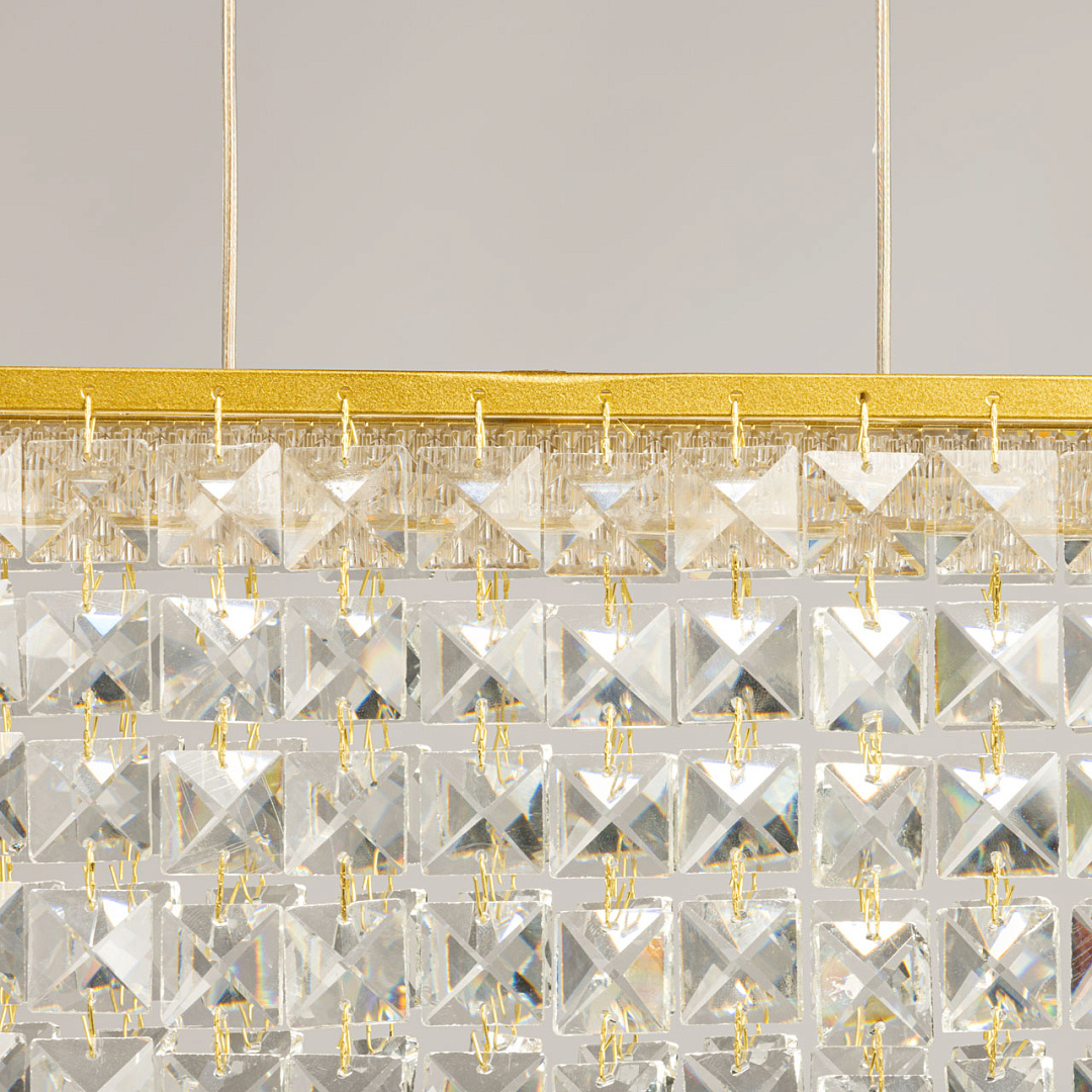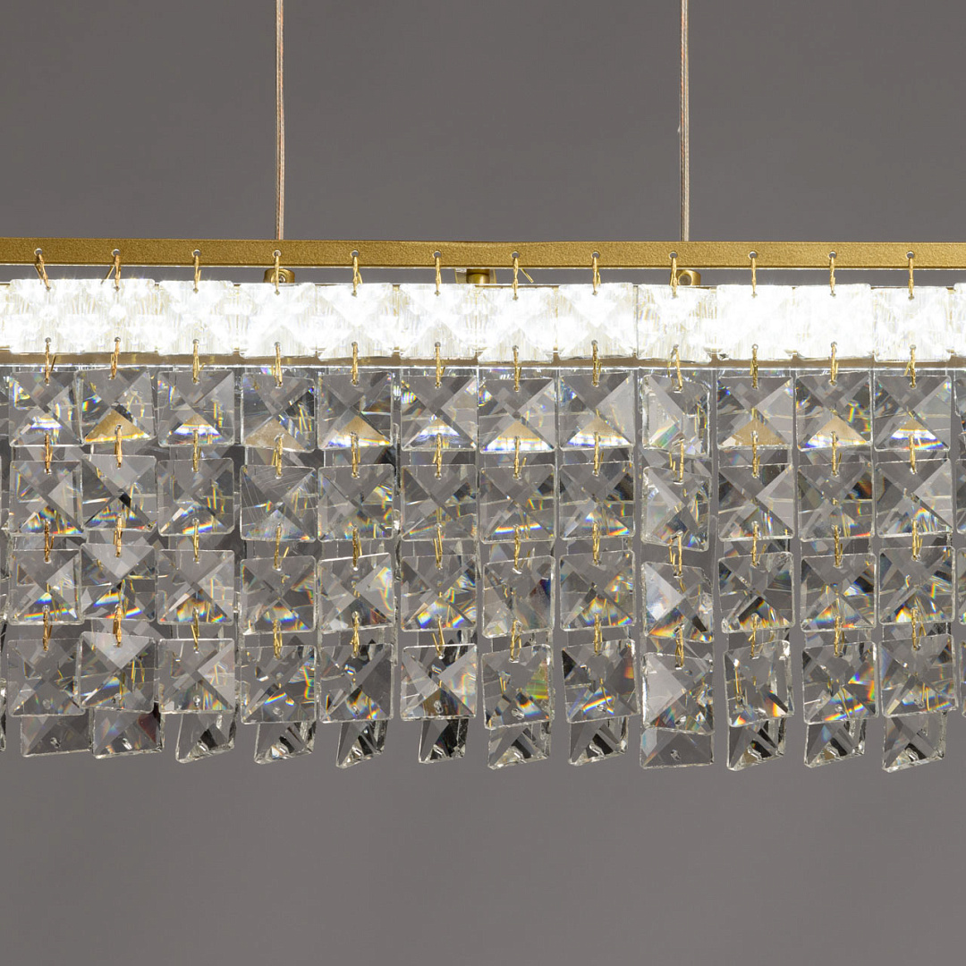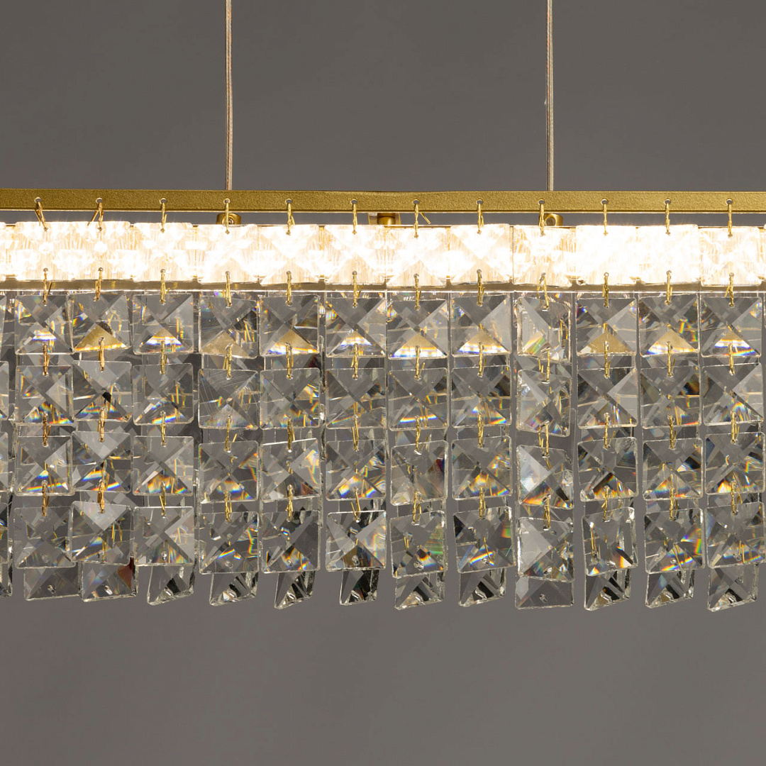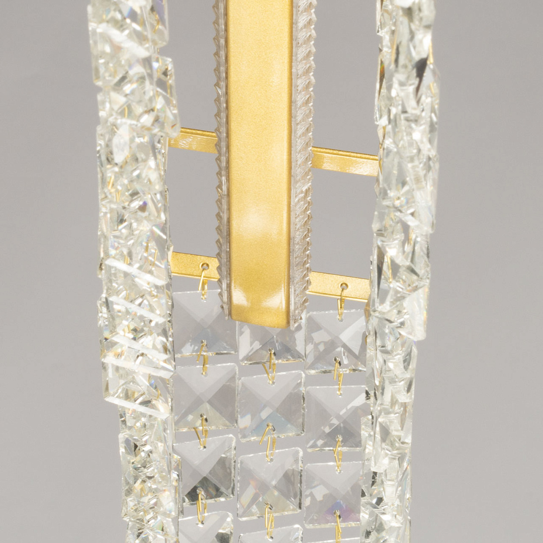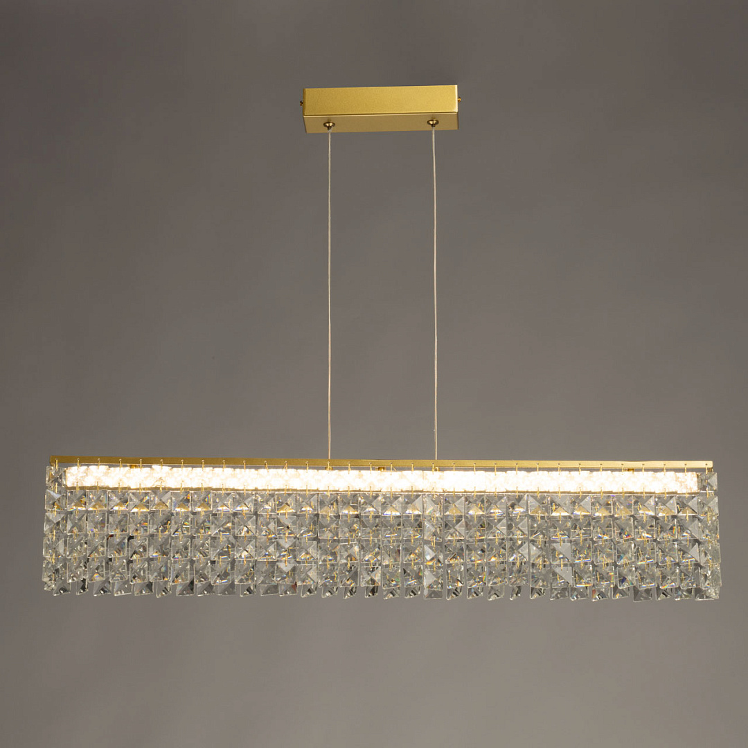 Модная комбинация классического цвета золота и минималистичного дизайна дополняет роскошный образ модели. Хрустальные элементы создают игру света и отражений, что придает помещению особый блеск и роскошь. Свет, отраженный от хрустального элемента, создает позитивное настроение и ощущение праздника.Многорежимность с изменением цветовой температуры от 3000К до 6000К является элементом светодизайна и позволяет подобрать комфортную температуру света с помощью настенного выключателя. Возможность регулировки высоты светильника позволяет создать комфортные условия освещения.Светодиодные источники света экономичны и безопасны.
