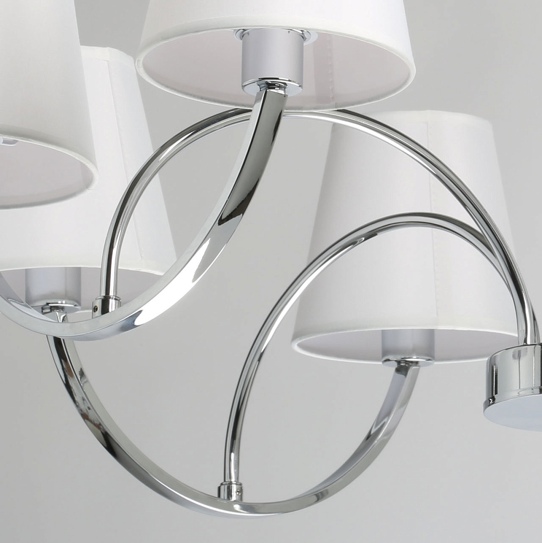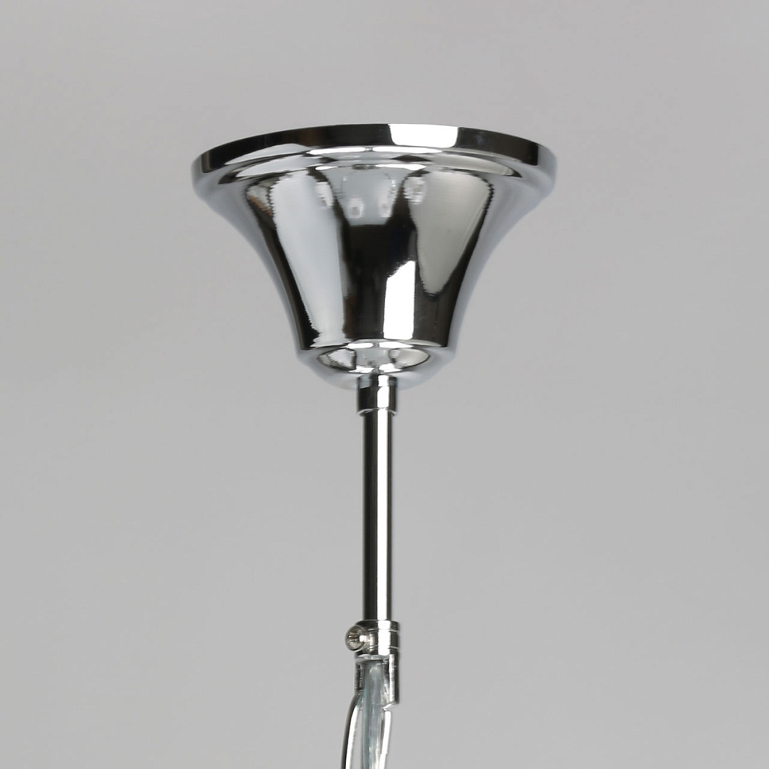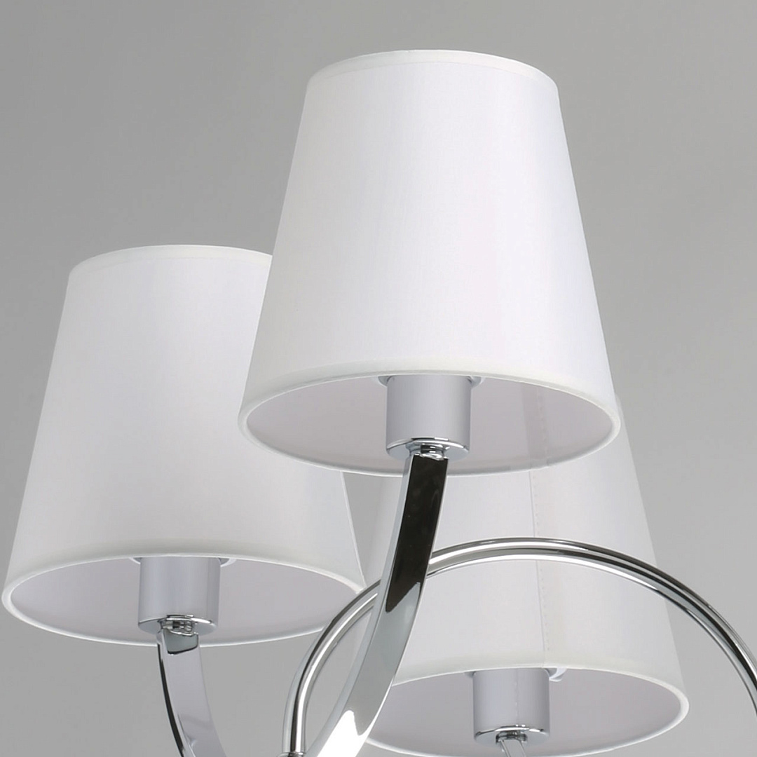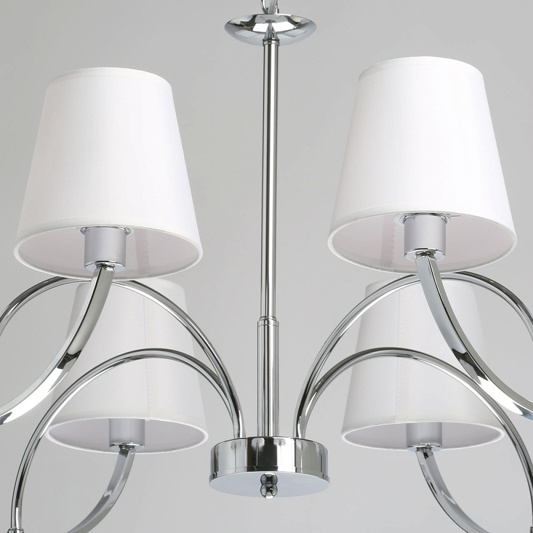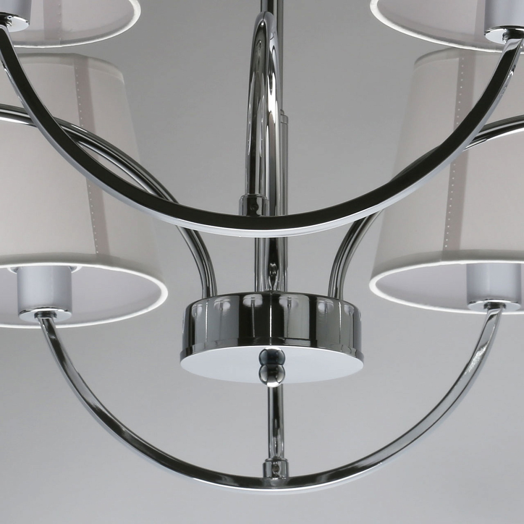 Минимализм декора подвесной люстры акцентирует внимание на современном цвете хрома.Оригинальный дизайн двойных рожков привлекает внимание.Текстильные абажуры создают мягкий комфортный свет.Заменяемые источники света удобны в эксплуатации.Возможность регулировать высоту.