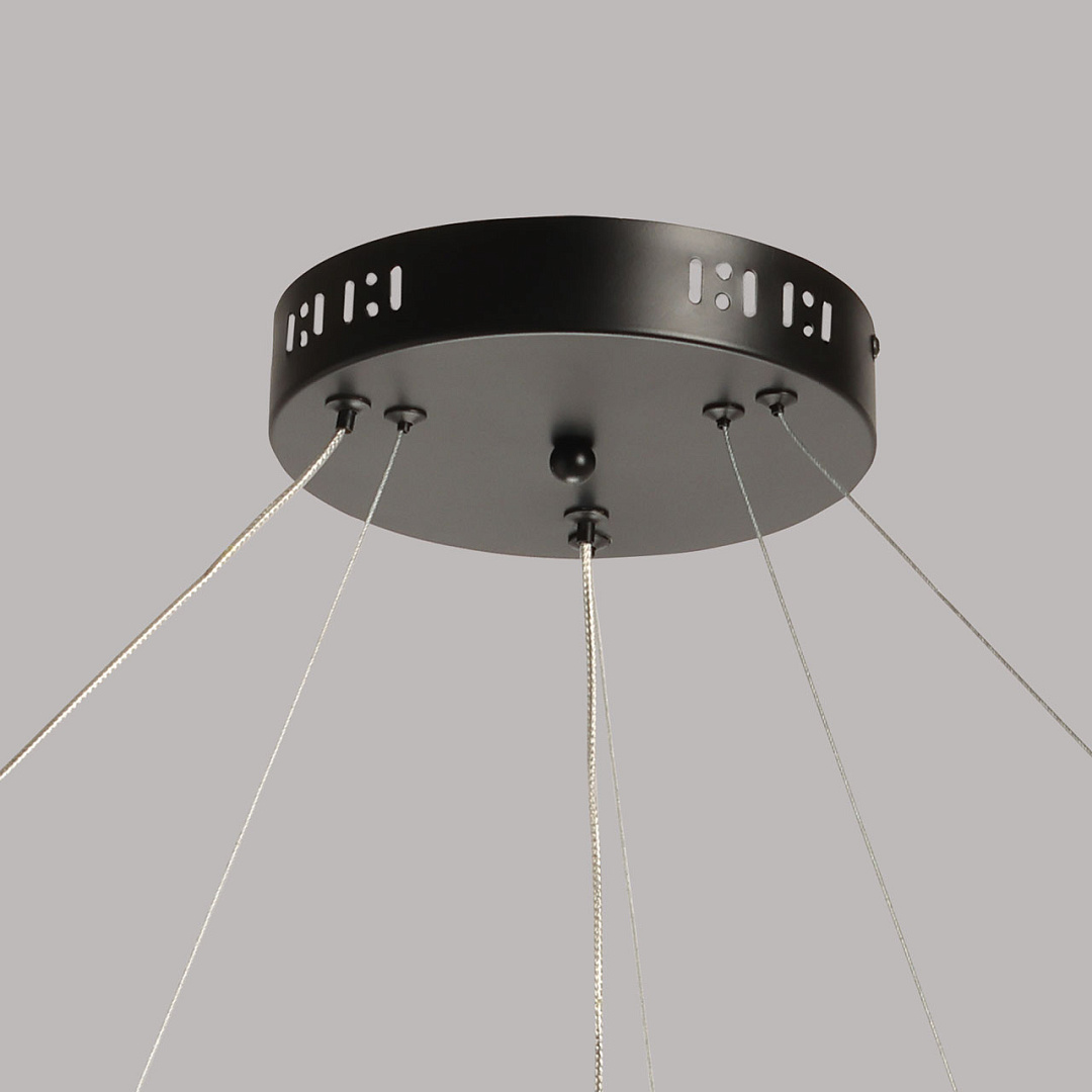 Сочетание геометричной формы и черного цвета актуально для современных интерьеров в стиле хай-тек и лофт. Плавное диммирование позволяет регулировать интенсивность освещения всего пространства комнаты. Изменение цветовой температуры света от холодного до теплого спектра создает комфортные условия. Инновационность и современность люстры поддерживают четыре функции: переключение цветности 3000K/4000K/6000K + ночной режим . Наличие пульта делает удобным управление функциями светильника. Светодиодные источники света безопасны и экономичны. Возможность регулировать комфортную высоту.