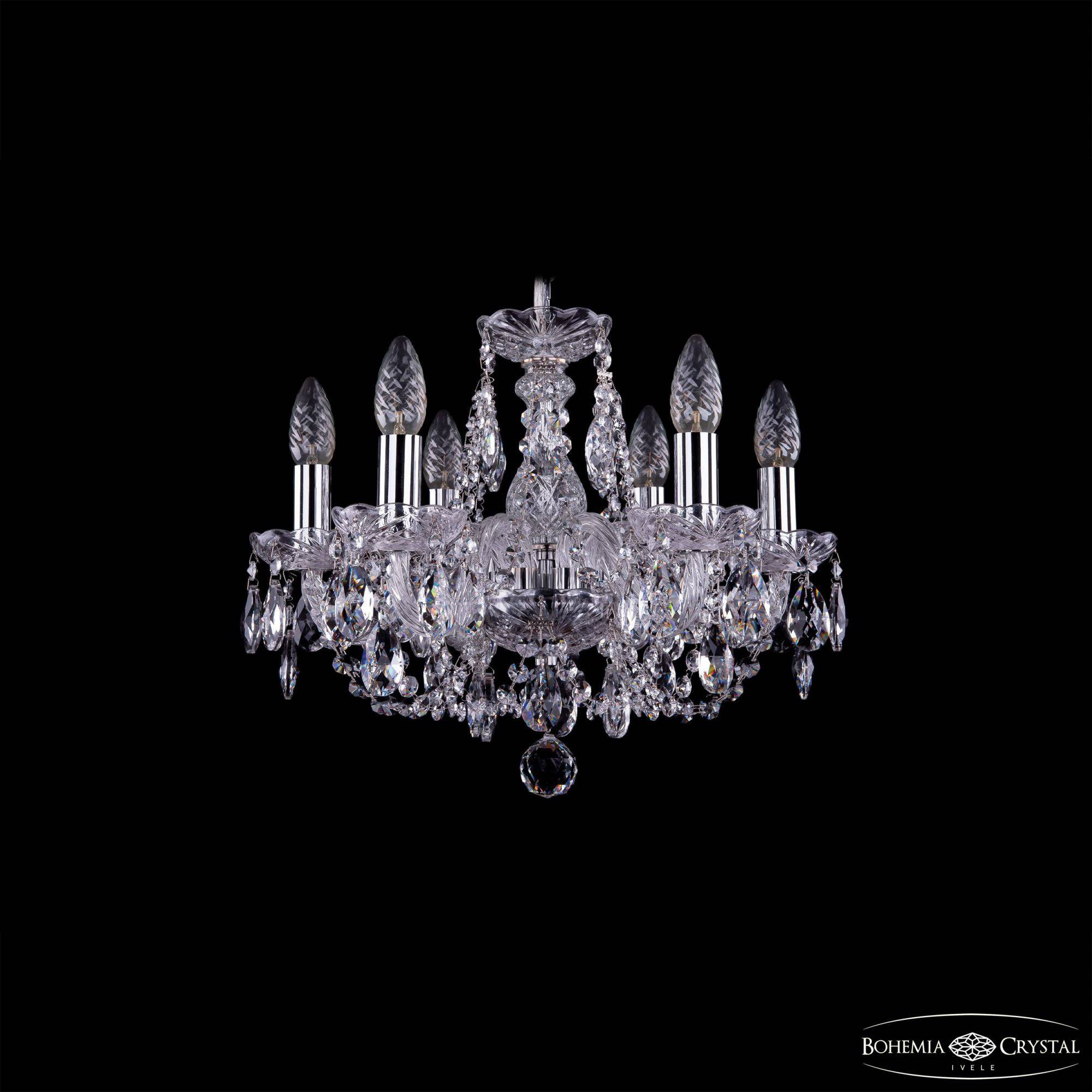 Чешская хрустальная подвесная люстра Bohemia IVELE Crystal 1406/6/141/Ni подойдет для помещений площадью от 14 до 21 квадратных метров. Арматура выполнена из высококачественного металла с нанесением гальванического покрытия. Цвет арматуры - никель. Также данная люстра доступна в цветах золото и патина. Рожок и декоративные элементы выполнены из высококачественного хрусталя с высокими отражающими и светопреломляющими характеристиками. Форма хрустальных подвесок - классическая.  Цвет хрусталя - прозрачный. По желанию люстра может быть укомплектована цветными хрустальными подвесками различной формы, а также абажурами. В люстре Bohemia Ivele Crystal используется стандартный патрон Е14, в который можно устанавливать как обычные лампы накаливания, так и светодиодные лампы. Отличным дополнением к хрустальной люстре в Вашем интерьере будут хрустальные бра, подвесы, торшеры и настольные лампы Bohemia Ivele Crystal. Мы осуществляем доставку светильников во все регионы Российской Федерации.