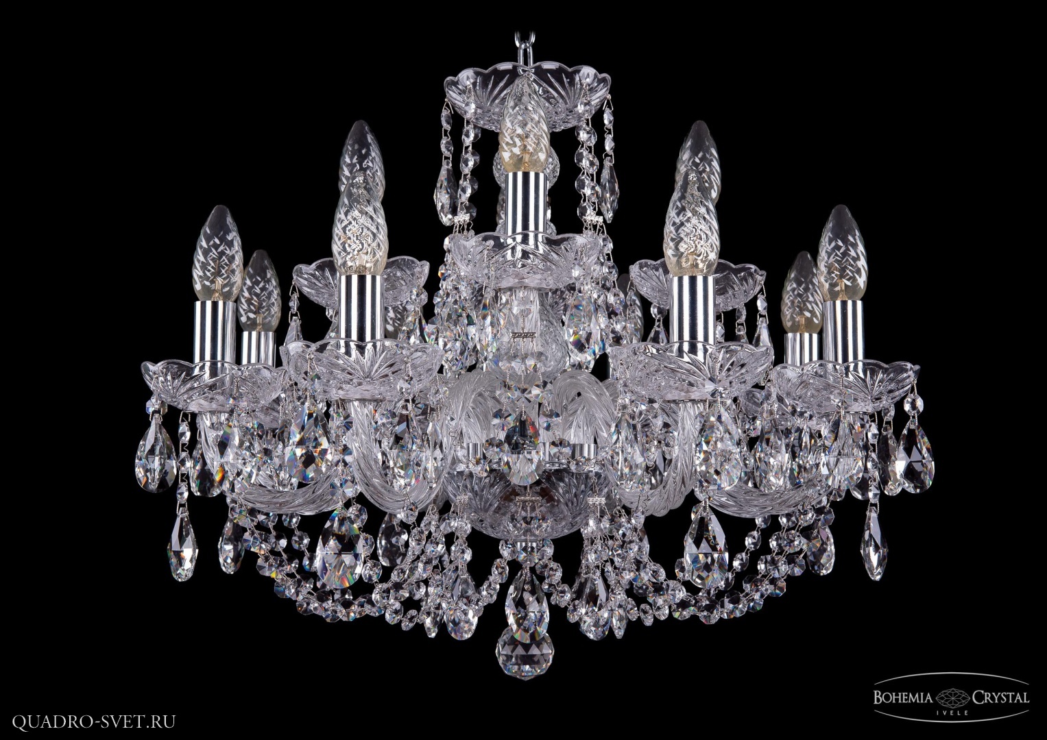 Чешская хрустальная подвесная люстра Bohemia IVELE Crystal 1406/8+4/195/Ni подойдет для помещений площадью от 28 до 42 квадратных метров. Арматура выполнена из высококачественного металла с нанесением гальванического покрытия. Цвет арматуры - никель. Также данная люстра доступна в цветах золото и патина. Рожок и декоративные элементы выполнены из высококачественного хрусталя с высокими отражающими и светопреломляющими характеристиками. Форма хрустальных подвесок - классическая.  Цвет хрусталя - прозрачный. По желанию люстра может быть укомплектована цветными хрустальными подвесками различной формы, а также абажурами. В люстре Bohemia Ivele Crystal используется стандартный патрон Е14, в который можно устанавливать как обычные лампы накаливания, так и светодиодные лампы. Отличным дополнением к хрустальной люстре в Вашем интерьере будут хрустальные бра, подвесы, торшеры и настольные лампы Bohemia Ivele Crystal. Мы осуществляем доставку светильников во все регионы Российской Федерации.