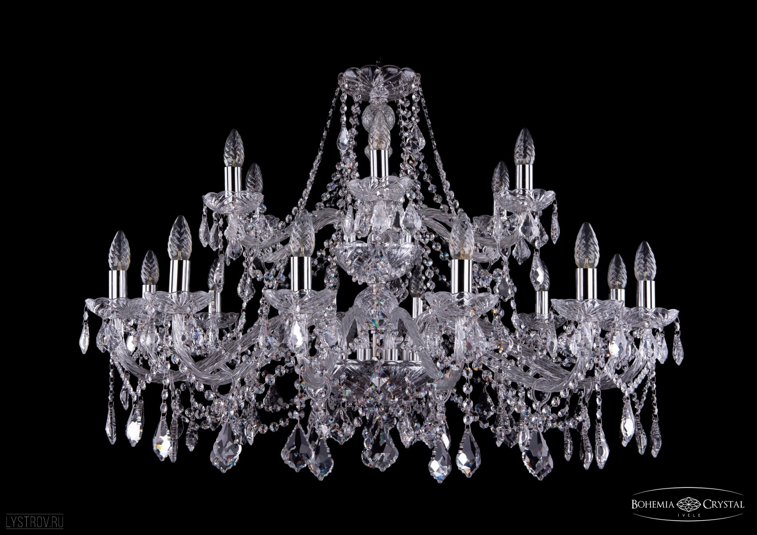 Хрустальная подвесная люстра Bohemia IVELE Crystal 1413/12+6/360-85/2d/Ni/Leafs