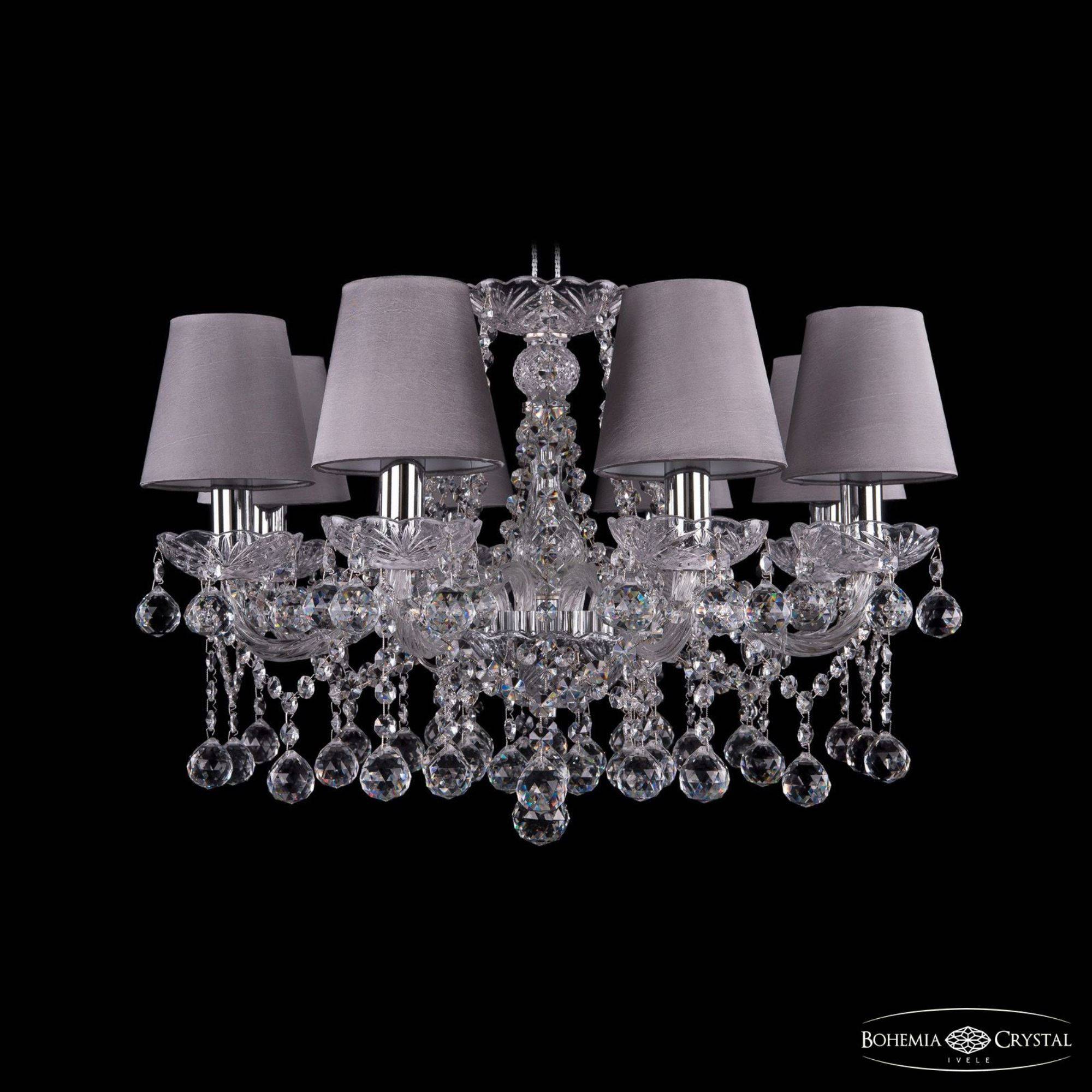 Хрустальная подвесная люстра с абажурами Bohemia IVELE Crystal 1413/8/200/Ni/Balls/SH24