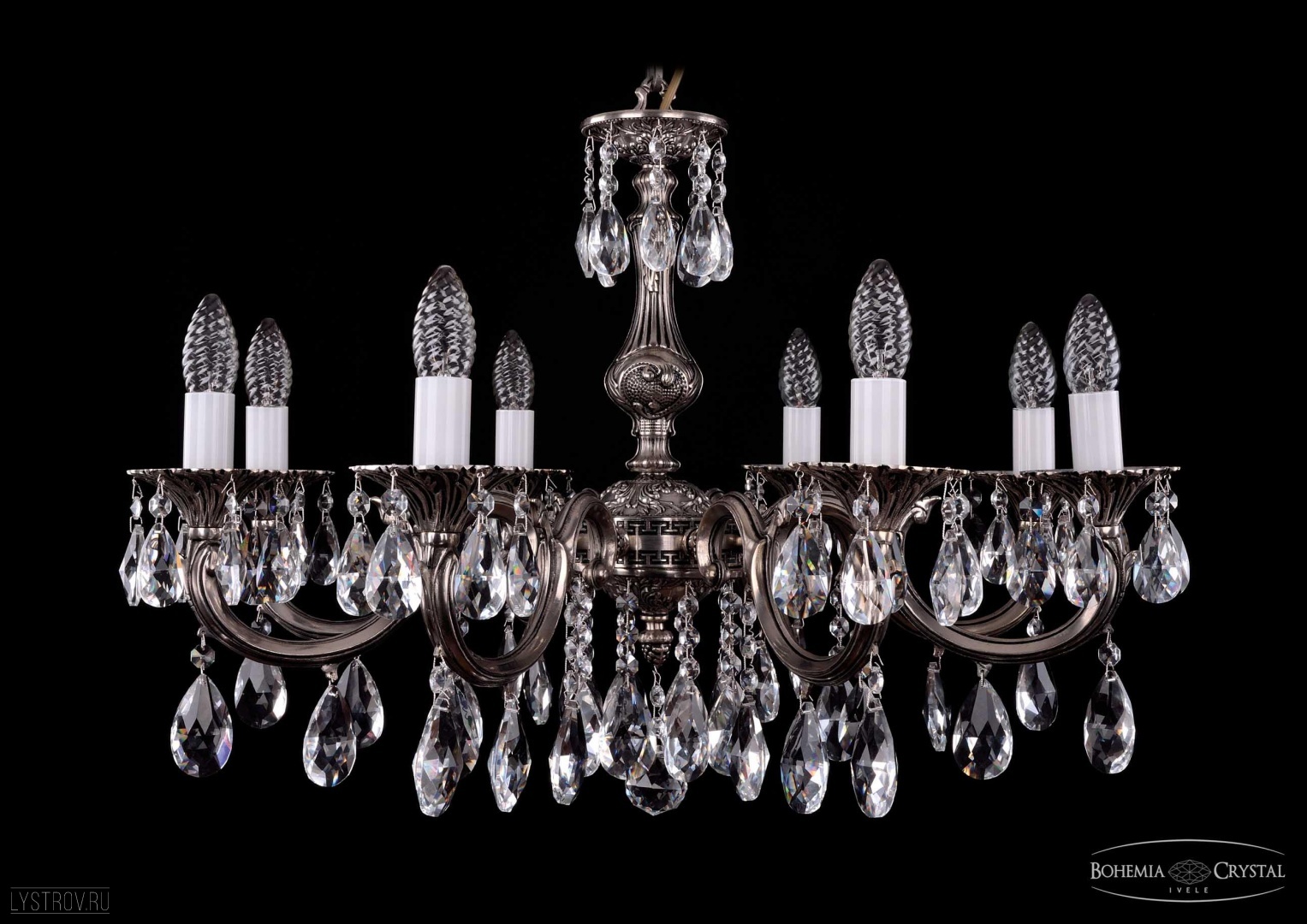 Чешская хрустальная подвесная люстра Bohemia IVELE Crystal 1702/8/A/NB подойдет для помещений площадью от 19 до 28 квадратных метров. Арматура выполнена из литой латуни - сплава на основе меди. Цвет арматуры - никель черненый. Также данная люстра доступна в цветах черненое золото и французская патина. Рожок изготовлен из латуни методом литья,  декоративные элементы выполнены из высококачественного хрусталя с высокими отражающими и светопреломляющими характеристиками. Форма хрустальных подвесок - классическая.  Цвет хрусталя - прозрачный. По желанию люстра может быть укомплектована абажурами. В люстре Bohemia Ivele Crystal используется стандартный патрон Е14, в который можно устанавливать как обычные лампы накаливания, так и светодиодные лампы. Отличным дополнением к хрустальной люстре в Вашем интерьере будут хрустальные бра, подвесы, торшеры и настольные лампы Bohemia Ivele Crystal. Мы осуществляем доставку светильников во все регионы Российской Федерации.