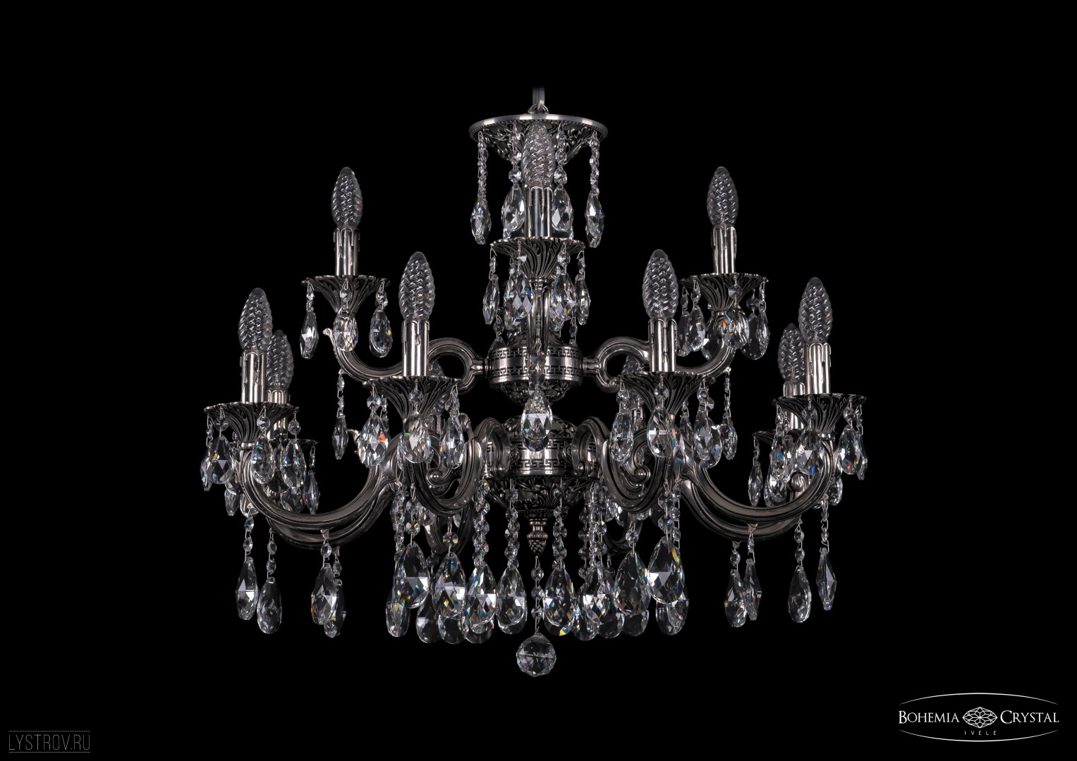 Чешская хрустальная подвесная люстра Bohemia IVELE Crystal 1702/8+4/265+181/A/NB подойдет для помещений площадью от 28 до 42 квадратных метров. Арматура выполнена из литой латуни - сплава на основе меди. Цвет арматуры - никель черненый. Рожок изготовлен из латуни методом литья,  декоративные элементы выполнены из высококачественного хрусталя с высокими отражающими и светопреломляющими характеристиками. Форма хрустальных подвесок - классическая.  Цвет хрусталя - прозрачный. По желанию люстра может быть укомплектована абажурами. В люстре Bohemia Ivele Crystal используется стандартный патрон Е14, в который можно устанавливать как обычные лампы накаливания, так и светодиодные лампы. Отличным дополнением к хрустальной люстре в Вашем интерьере будут хрустальные бра, подвесы, торшеры и настольные лампы Bohemia Ivele Crystal. Мы осуществляем доставку светильников во все регионы Российской Федерации.