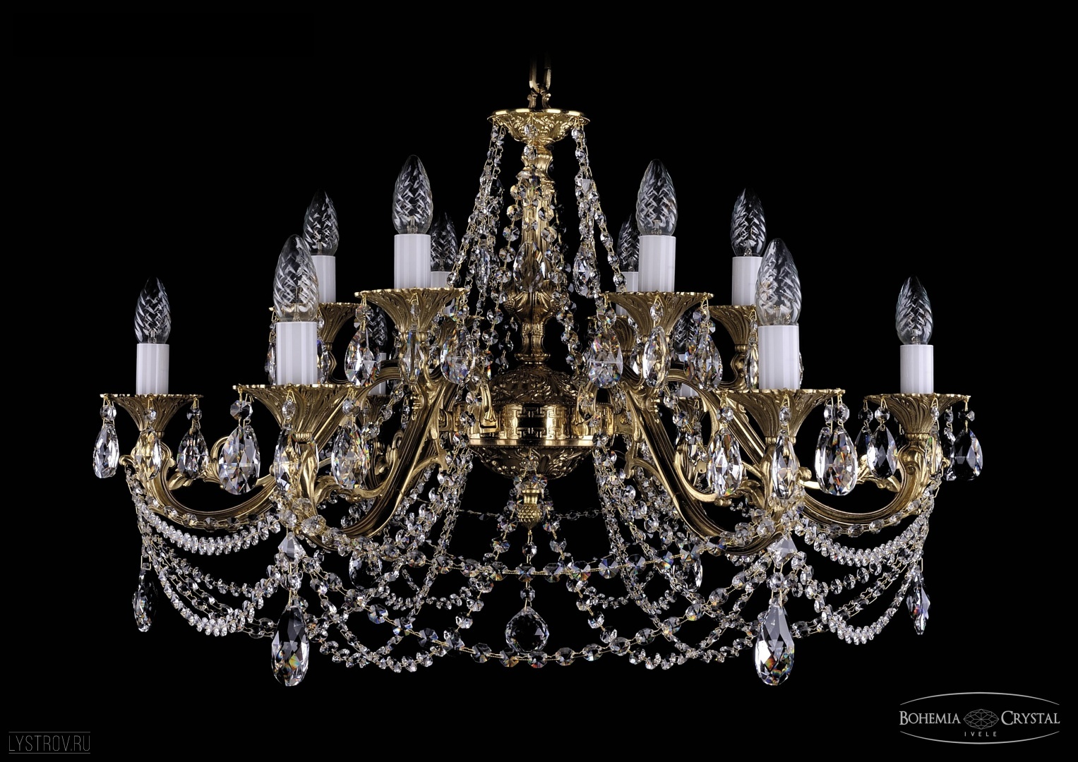 Чешская хрустальная подвесная люстра Bohemia IVELE Crystal 1703/12/C/G подойдет для помещений площадью от 28 до 42 квадратных метров. Арматура выполнена из литой латуни - сплава на основе меди. Цвет арматуры - золото. Рожок изготовлен из латуни методом литья,  декоративные элементы выполнены из высококачественного хрусталя с высокими отражающими и светопреломляющими характеристиками. Форма хрустальных подвесок - классическая.  Цвет хрусталя - прозрачный. По желанию люстра может быть укомплектована абажурами. В люстре Bohemia Ivele Crystal используется стандартный патрон Е14, в который можно устанавливать как обычные лампы накаливания, так и светодиодные лампы. Отличным дополнением к хрустальной люстре в Вашем интерьере будут хрустальные бра, подвесы, торшеры и настольные лампы Bohemia Ivele Crystal. Мы осуществляем доставку светильников во все регионы Российской Федерации.