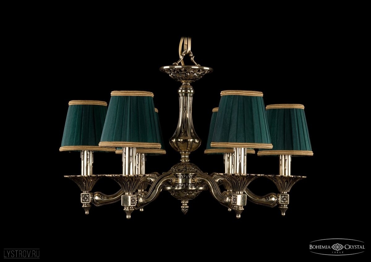 Чешская подвесная люстра Bohemia IVELE Crystal 1710/6/160/GB/SH10B подойдет для помещений площадью от 14 до 21 квадратных метров. Арматура выполнена из литой латуни - сплава на основе меди. Цвет арматуры - золото черненое. Рожок изготовлен из латуни методом литья. Форма хрустальных подвесок - классическая.  Люстра укомплектована абажурами зеленого цвета с золотой каймой. В люстре Bohemia Ivele Crystal используется стандартный патрон Е14, в который можно устанавливать как обычные лампы накаливания, так и светодиодные лампы. Отличным дополнением к хрустальной люстре в Вашем интерьере будут хрустальные бра, подвесы, торшеры и настольные лампы Bohemia Ivele Crystal. Мы осуществляем доставку светильников во все регионы Российской Федерации.