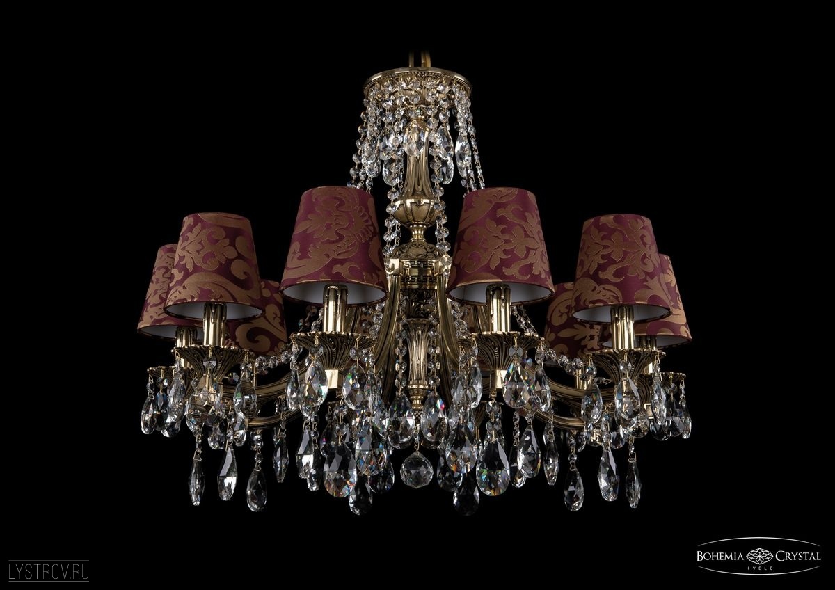Чешская хрустальная подвесная люстра Bohemia IVELE Crystal 1771/10/220/A/GB/SH27 подойдет для помещений площадью от 24 до 35 квадратных метров. Арматура выполнена из литой латуни - сплава на основе меди. Цвет арматуры - золото черненое. Рожок изготовлен из латуни методом литья,  декоративные элементы выполнены из высококачественного хрусталя с высокими отражающими и светопреломляющими характеристиками. Форма хрустальных подвесок - классическая.  Люстра укомплектована абажурами цвета бордо с золотым теснением. В люстре Bohemia Ivele Crystal используется стандартный патрон Е14, в который можно устанавливать как обычные лампы накаливания, так и светодиодные лампы. Отличным дополнением к хрустальной люстре в Вашем интерьере будут хрустальные бра, подвесы, торшеры и настольные лампы Bohemia Ivele Crystal. Мы осуществляем доставку светильников во все регионы Российской Федерации.