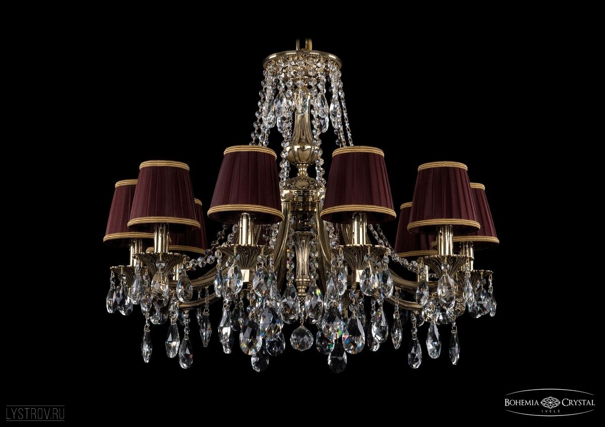 Чешская хрустальная подвесная люстра Bohemia IVELE Crystal 1771/10/220/A/GB/SH9B подойдет для помещений площадью от 24 до 35 квадратных метров. Арматура выполнена из литой латуни - сплава на основе меди. Цвет арматуры - золото черненое. Рожок изготовлен из латуни методом литья,  декоративные элементы выполнены из высококачественного хрусталя с высокими отражающими и светопреломляющими характеристиками. Форма хрустальных подвесок - классическая.  Люстра укомплектована абажурами цвета темный бордо с золотой каймой. В люстре Bohemia Ivele Crystal используется стандартный патрон Е14, в который можно устанавливать как обычные лампы накаливания, так и светодиодные лампы. Отличным дополнением к хрустальной люстре в Вашем интерьере будут хрустальные бра, подвесы, торшеры и настольные лампы Bohemia Ivele Crystal. Мы осуществляем доставку светильников во все регионы Российской Федерации.