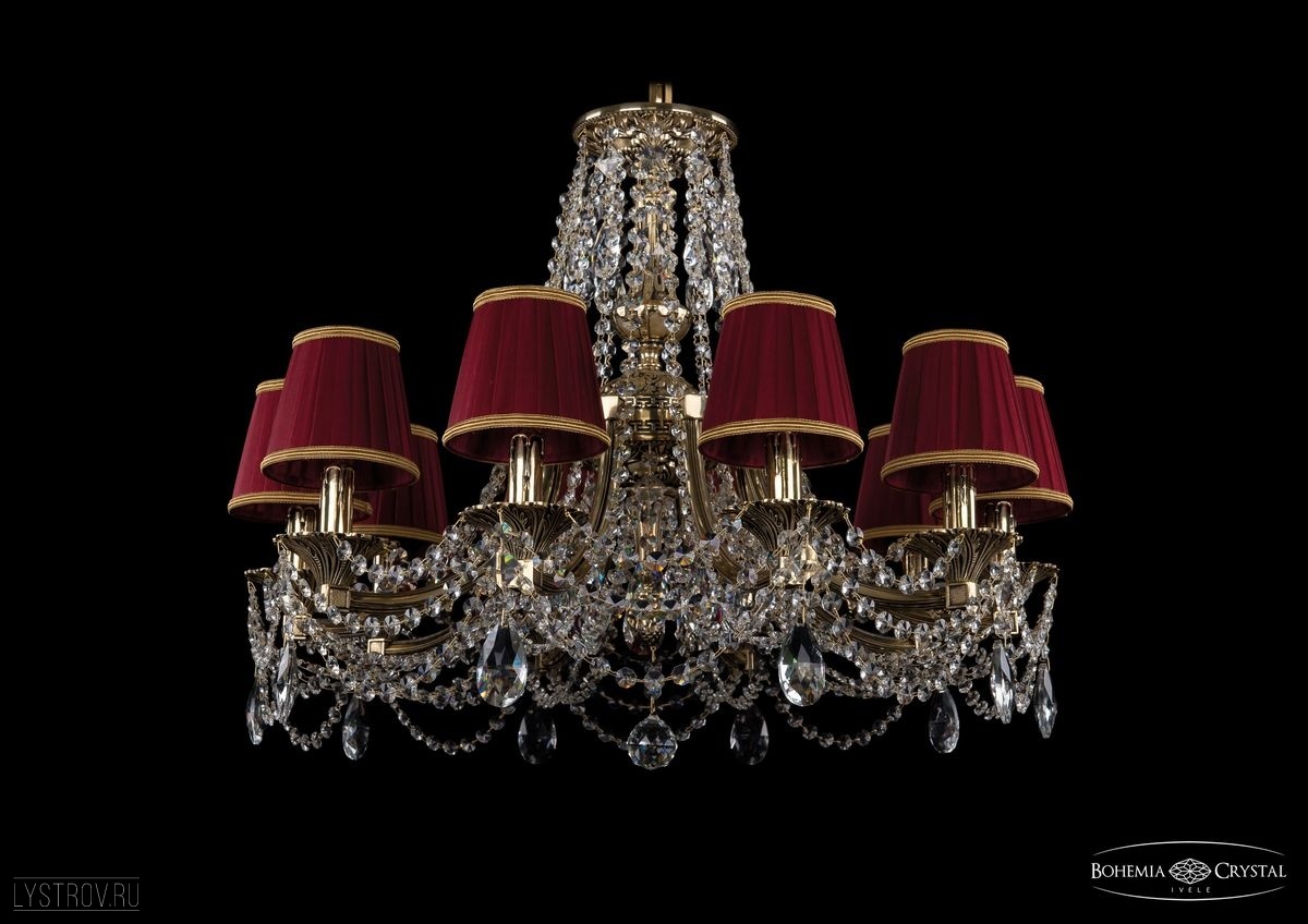 Чешская хрустальная подвесная люстра Bohemia IVELE Crystal 1771/10/220/C/GB/SH8B подойдет для помещений площадью от 24 до 35 квадратных метров. Арматура выполнена из литой латуни - сплава на основе меди. Цвет арматуры - золото черненое. Рожок изготовлен из латуни методом литья,  декоративные элементы выполнены из высококачественного хрусталя с высокими отражающими и светопреломляющими характеристиками. Форма хрустальных подвесок - классическая.  Люстра укомплектована абажурами цвета светлый бордо с золотой каймой. В люстре Bohemia Ivele Crystal используется стандартный патрон Е14, в который можно устанавливать как обычные лампы накаливания, так и светодиодные лампы. Отличным дополнением к хрустальной люстре в Вашем интерьере будут хрустальные бра, подвесы, торшеры и настольные лампы Bohemia Ivele Crystal. Мы осуществляем доставку светильников во все регионы Российской Федерации.