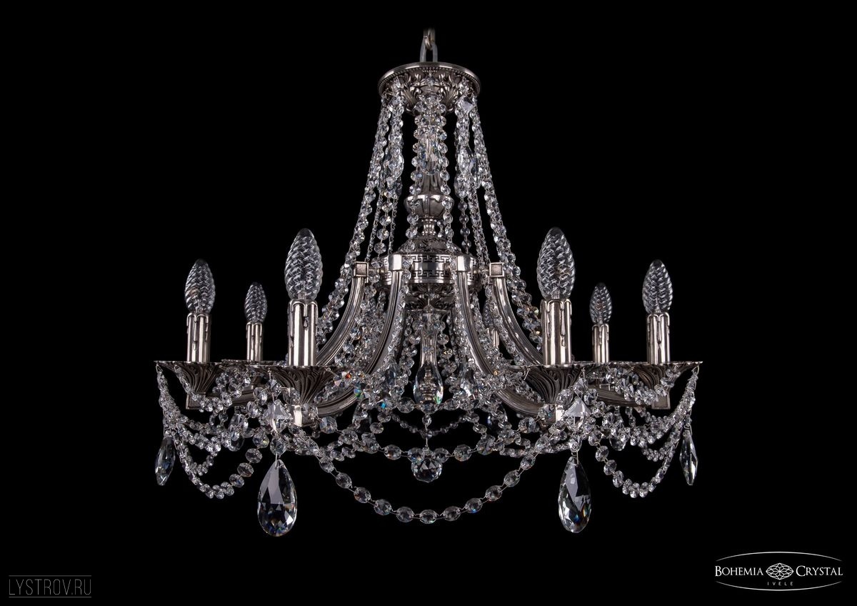 Чешская хрустальная подвесная люстра Bohemia IVELE Crystal 1771/8/220/C/NB подойдет для помещений площадью от 19 до 28 квадратных метров. Арматура выполнена из литой латуни - сплава на основе меди. Цвет арматуры - никель черненый. Рожок изготовлен из латуни методом литья,  декоративные элементы выполнены из высококачественного хрусталя с высокими отражающими и светопреломляющими характеристиками. Форма хрустальных подвесок - классическая.  Цвет хрусталя - прозрачный. По желанию люстра может быть укомплектована абажурами. В люстре Bohemia Ivele Crystal используется стандартный патрон Е14, в который можно устанавливать как обычные лампы накаливания, так и светодиодные лампы. Отличным дополнением к хрустальной люстре в Вашем интерьере будут хрустальные бра, подвесы, торшеры и настольные лампы Bohemia Ivele Crystal. Мы осуществляем доставку светильников во все регионы Российской Федерации.