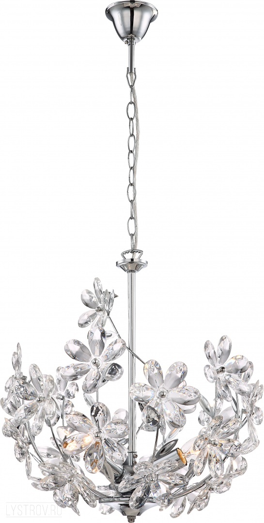 Подвесная хрустальная люстра LSP-0184 итальянского производителя LGO из коллекции LSP-0184-0185 исполнена в стиле флористика. Арматура светильника выполнена из металла цвета хром. Поверхность арматуры глянцевая. Плафон изготовлен из хрусталя прозрачного цвета. с глянцевой поверхностью. Декоративные элементы выполнены из прозрачного хрусталя. Осветительный прибор рассчитан на освещение пространства площадью 6 кв. м. Тип цоколя используемых ламп E14. Производитель рекомендует использовать лампы мощностью не более 40 Вт. Суммарная мощность светильника составляет 120 Вт. Лампочки в комплект не входят. Защита от попадания влаги и пыли внутрь изделия не предусмотрена. Рекомендуем к применению в гостиной, кабинете, спальне.
