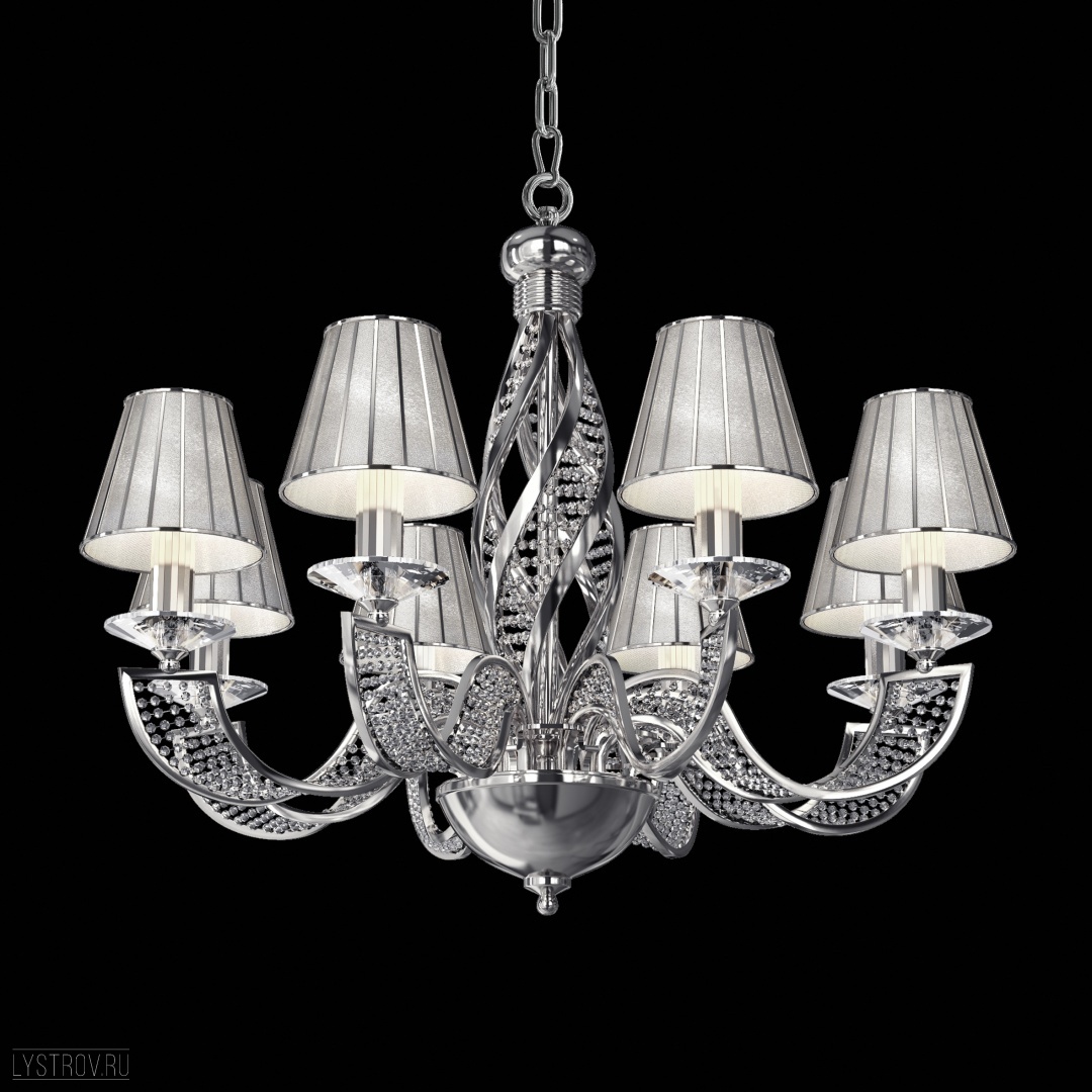 металла цвета хром. Поверхность арматуры глянцевая. Плафон изготовлен из текстиля белого цвета, имеет конусную форму и матовую поверхность. Направлен вверх и вниз. Осветительный прибор рассчитан на освещение пространства площадью 16 кв. м. Тип цоколя используемых ламп E14. Производитель рекомендует использовать лампы мощностью не более 40 Вт. Суммарная мощность светильника составляет 320 Вт. Лампочки в комплект не входят. Защита от попадания влаги и пыли внутрь изделия не предусмотрена. Рекомендуем к применению в гостиной, кабинете, спальне.