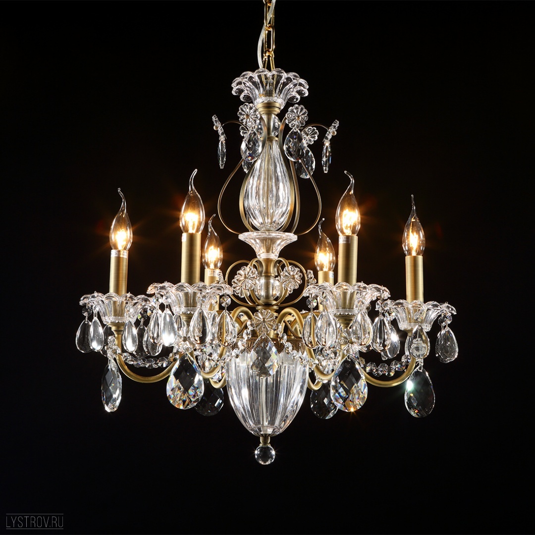 металла бронзового цвета. Поверхность арматуры матовая. Плафон отсутствует. Декоративные элементы выполнены из прозрачного хрусталя. Осветительный прибор рассчитан на освещение пространства площадью 27 кв. м. Тип цоколя используемых ламп E14. Производитель рекомендует использовать лампы мощностью не более 60 Вт. Суммарная мощность светильника составляет 540 Вт. Лампочки в комплект не входят. Защита от попадания влаги и пыли внутрь изделия не предусмотрена. Рекомендуем к применению в гостиной, кабинете, спальне.