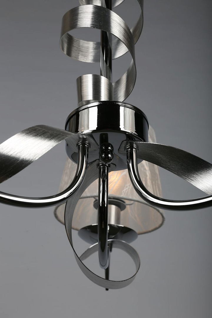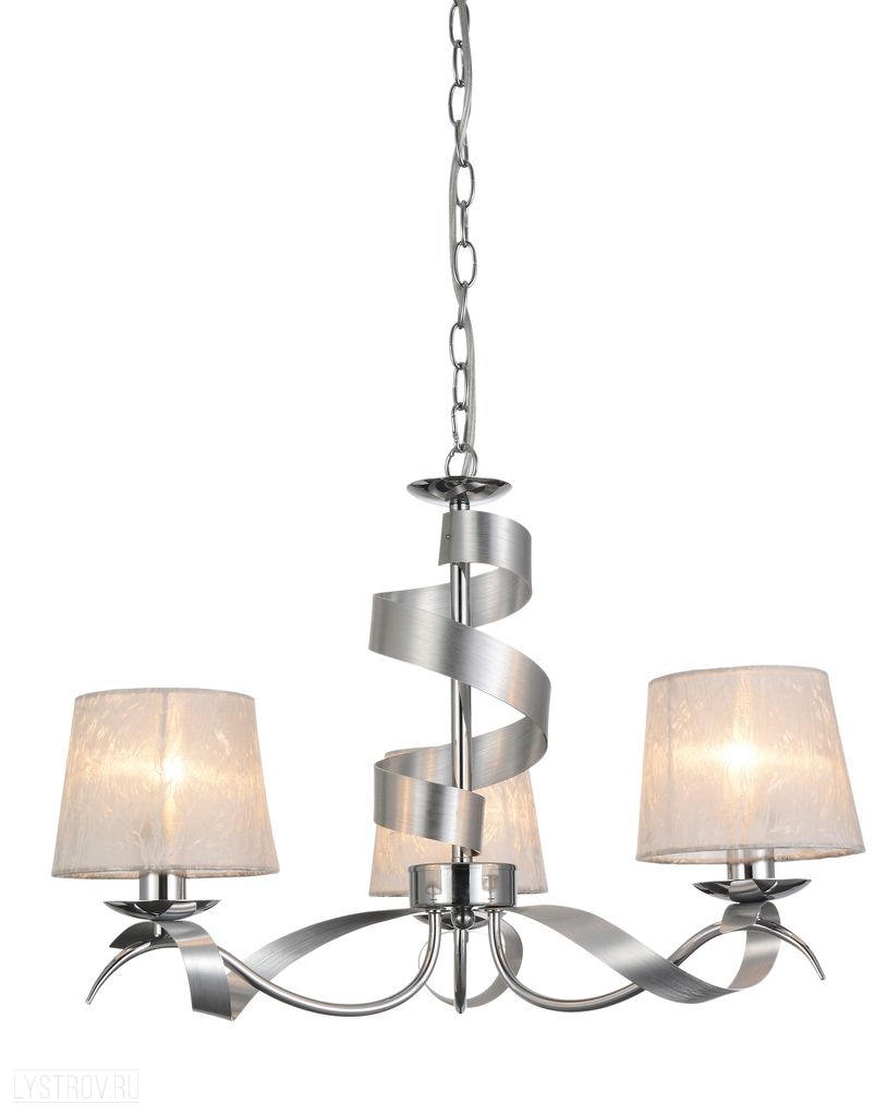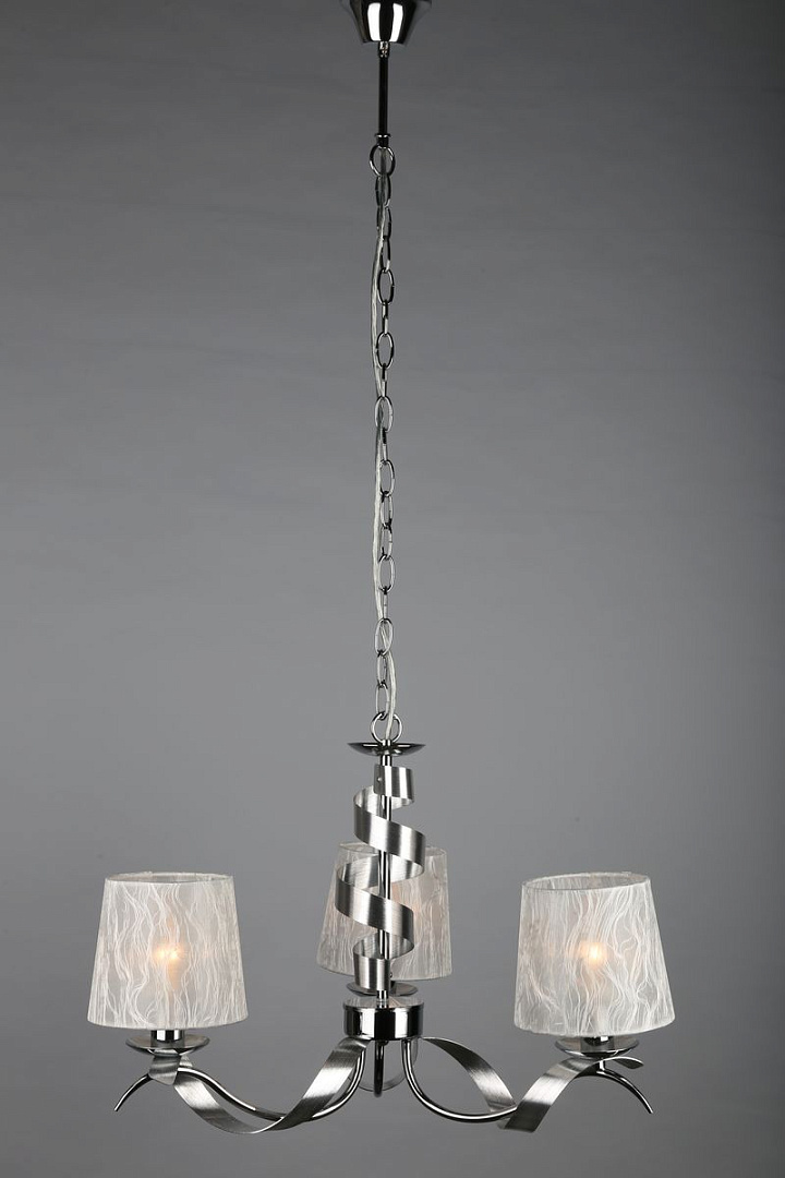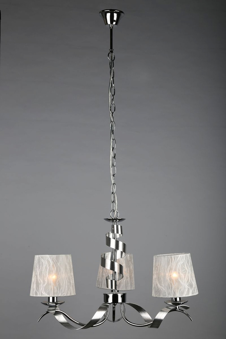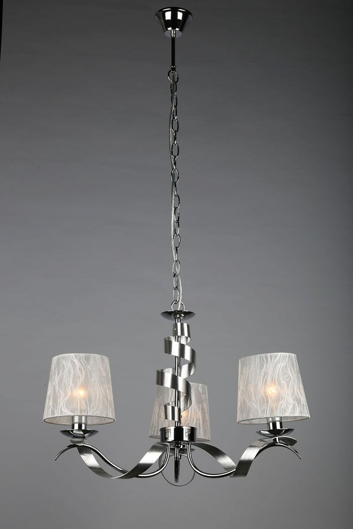 металла цвета хром. Поверхность арматуры глянцевая. Плафон изготовлен из текстиля белого цвета, имеет конусную форму и матовую поверхность. Направлен вверх и вниз. Осветительный прибор рассчитан на освещение пространства площадью 6 кв. м. Тип цоколя используемых ламп E14. Производитель рекомендует использовать лампы мощностью не более 40 Вт. Суммарная мощность светильника составляет 120 Вт. Лампочки в комплект не входят. Защита от попадания влаги и пыли внутрь изделия не предусмотрена. Рекомендуем к применению в гостиной, кабинете, спальне.