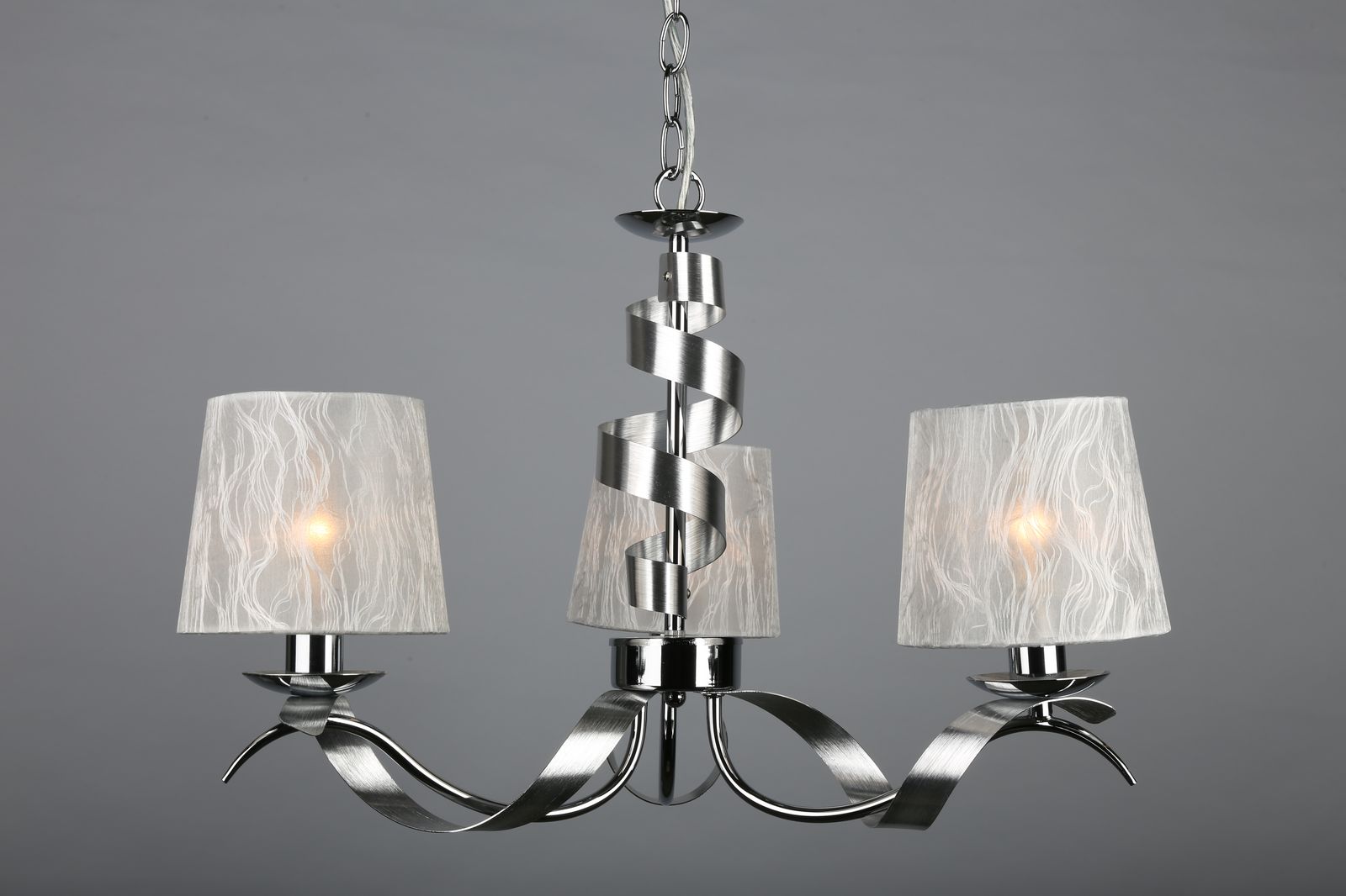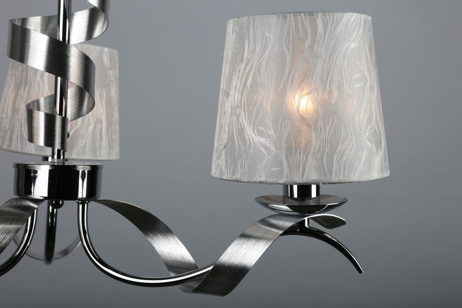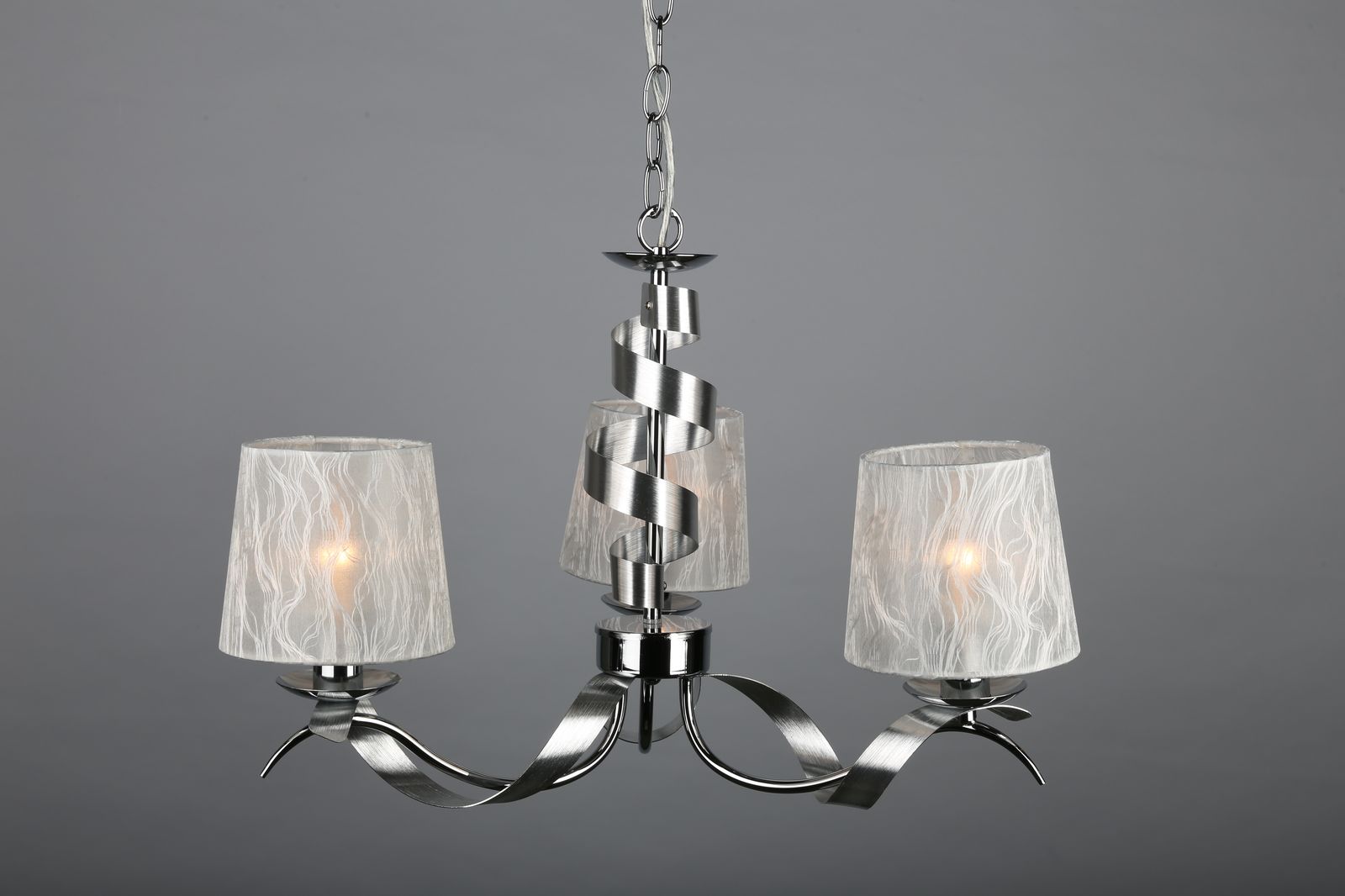 металла цвета хром. Поверхность арматуры глянцевая. Плафон изготовлен из текстиля белого цвета, имеет конусную форму и матовую поверхность. Направлен вверх и вниз. Осветительный прибор рассчитан на освещение пространства площадью 6 кв. м. Тип цоколя используемых ламп E14. Производитель рекомендует использовать лампы мощностью не более 40 Вт. Суммарная мощность светильника составляет 120 Вт. Лампочки в комплект не входят. Защита от попадания влаги и пыли внутрь изделия не предусмотрена. Рекомендуем к применению в гостиной, кабинете, спальне.