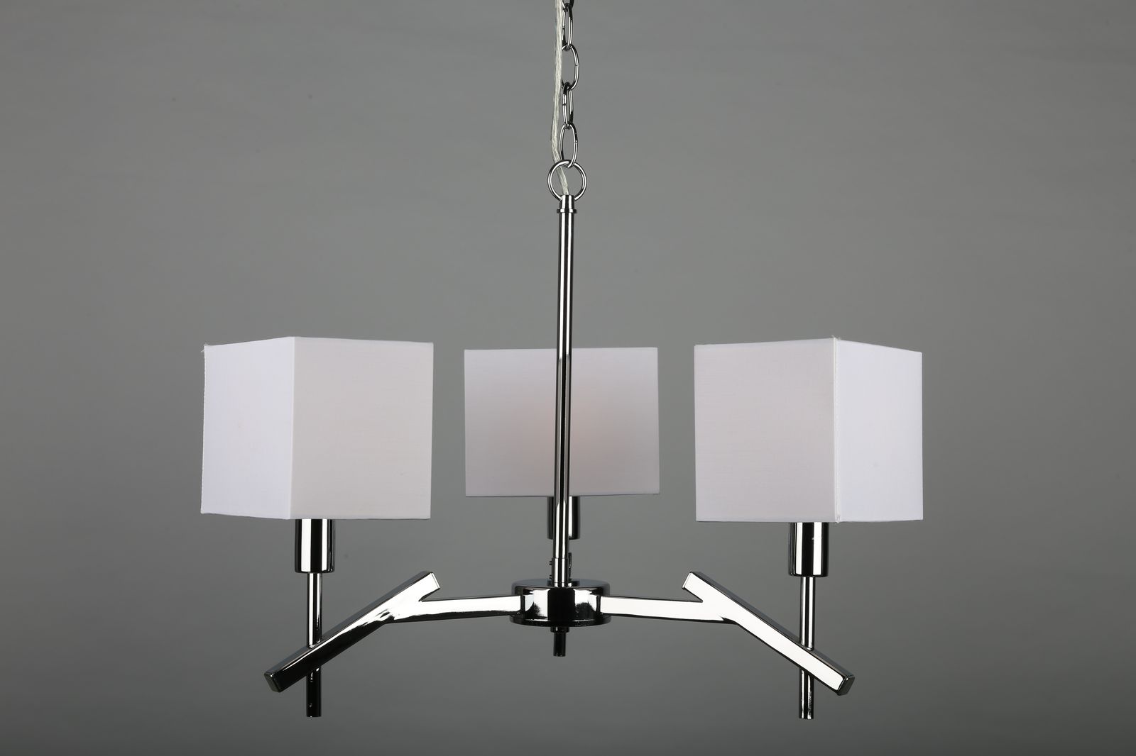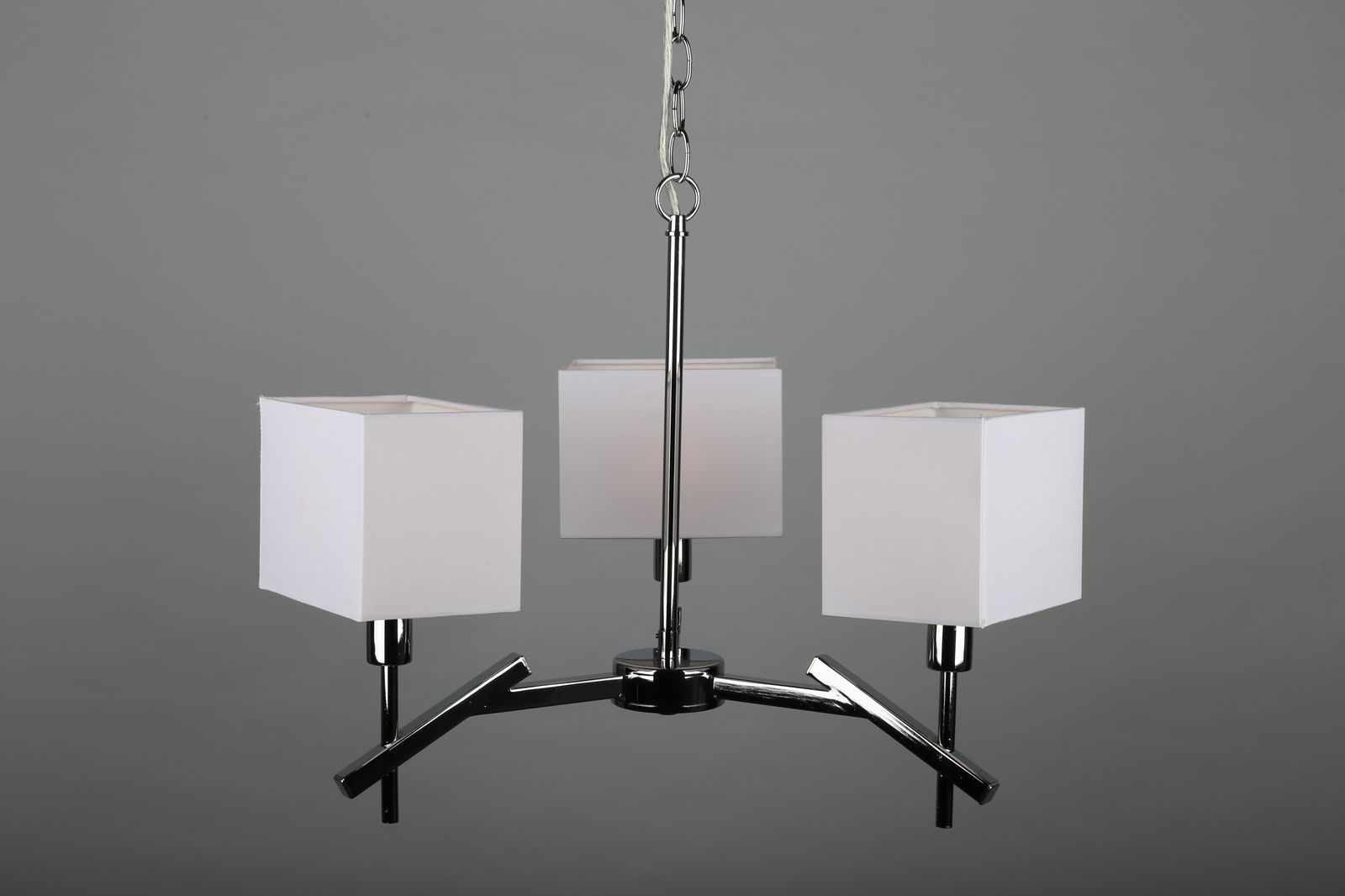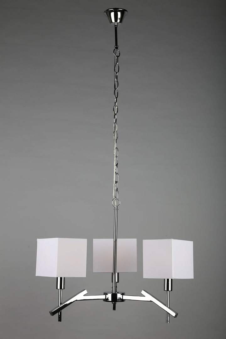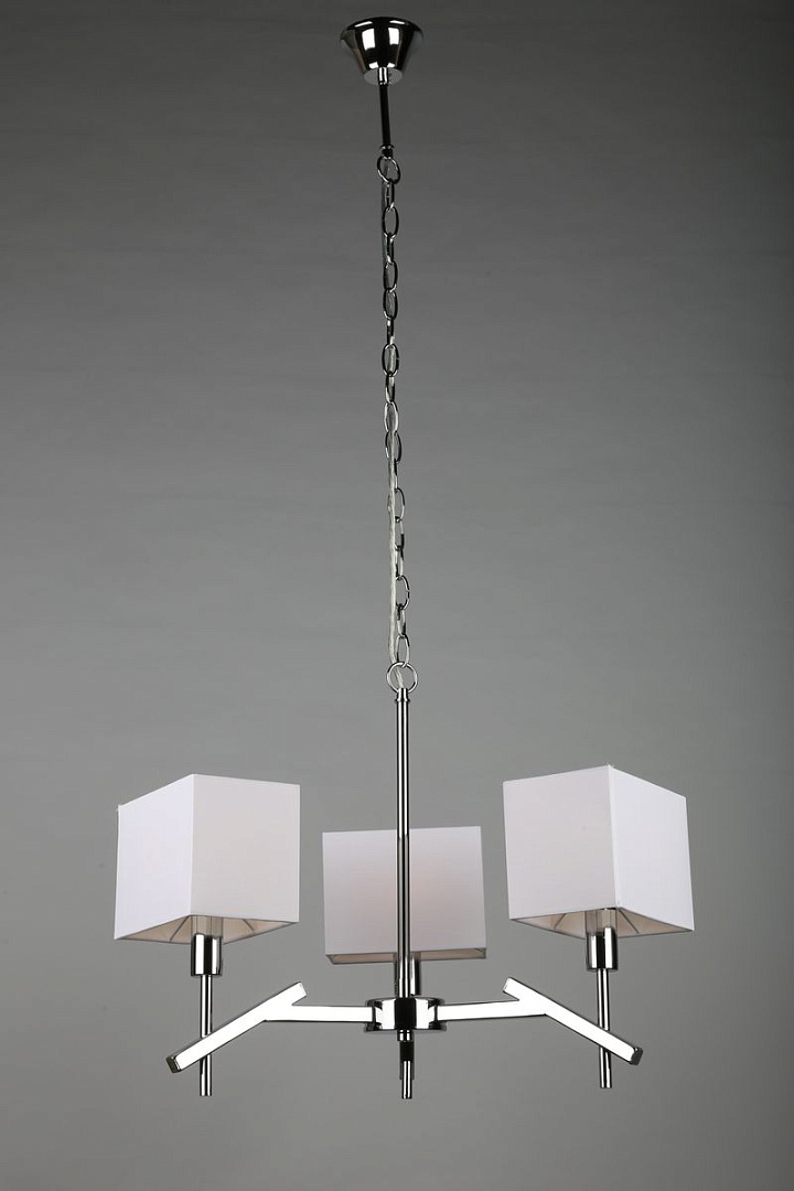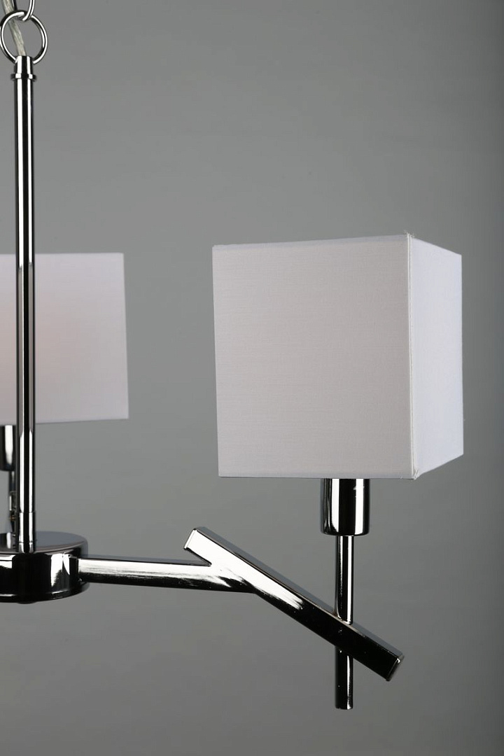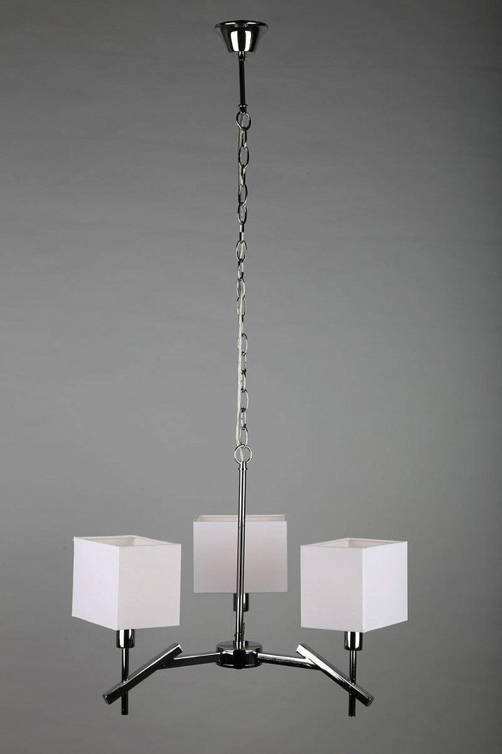 металла цвета хром. Поверхность арматуры глянцевая. Плафон изготовлен из текстиля белого цвета, имеет прямоугольную объемную форму и матовую поверхность. Направлен вверх и вниз. Осветительный прибор рассчитан на освещение пространства площадью 6 кв. м. Тип цоколя используемых ламп E14. Производитель рекомендует использовать лампы мощностью не более 40 Вт. Суммарная мощность светильника составляет 120 Вт. Лампочки в комплект не входят. Защита от попадания влаги и пыли внутрь изделия не предусмотрена. Рекомендуем к применению в гостиной, кабинете, спальне.
