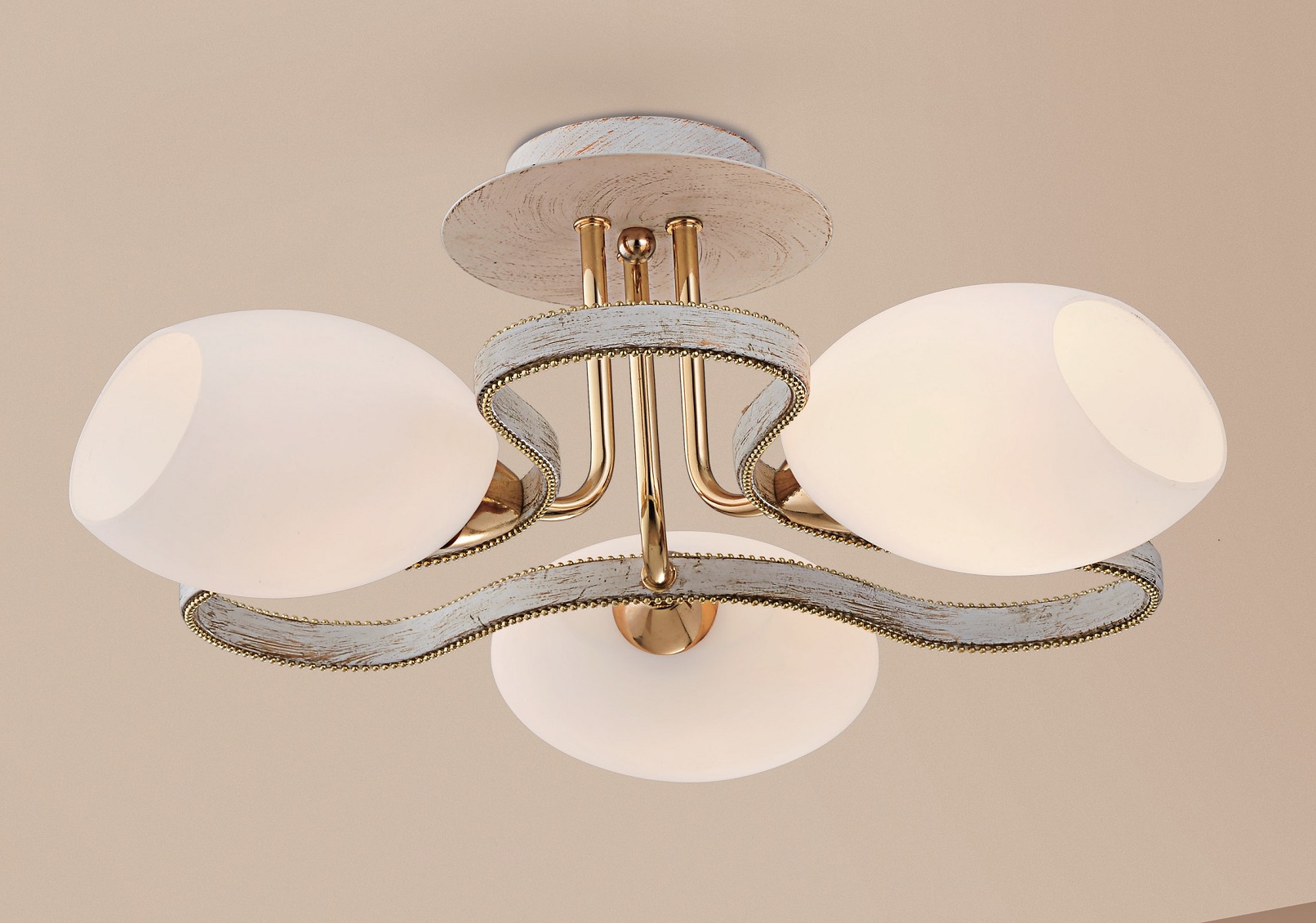 Потолочная люстра CL131133 датского производителя CITILUX из коллекции Октава выполнена в стиле модерн. Арматура светильника выполнена из металла белого и золотого цветов. Поверхность арматуры матово-глянцевая. Плафон изготовлен из стекла белого цвета, имеет овальную форму и матовую поверхность. Направлен в стороны. Осветительный прибор рассчитан на освещение пространства площадью 9 кв. м. Тип цоколя используемых ламп E14. Производитель рекомендует использовать лампы мощностью не более 60 Вт. Суммарная мощность светильника составляет 180 Вт. Лампочки в комплект не входят. Защита от попадания влаги и пыли внутрь изделия не предусмотрена. Рекомендуем к применению в гостиной, кабинете, спальне.