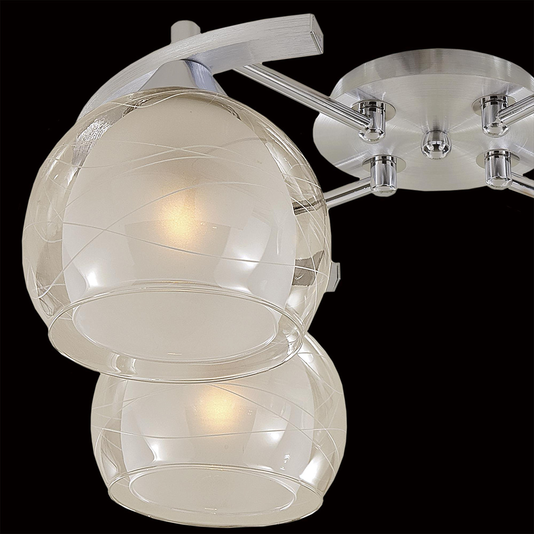 Потолочная люстра CL157142 датского производителя CITILUX из коллекции Буги выполнена в стиле модерн. Арматура светильника выполнена из металла цвета алюминий с хромом. Поверхность арматуры глянцевая. Плафон изготовлен из стекла прозрачного и белого цветов, имеет сферическую форму и матовую поверхность. Осветительный прибор рассчитан на освещение пространства площадью 15 кв. м. Тип цоколя используемых ламп E27. Производитель рекомендует использовать лампы мощностью не более 75 Вт. Суммарная мощность светильника составляет 300 Вт. Лампочки в комплект не входят. Защита от попадания влаги и пыли внутрь изделия не предусмотрена. Рекомендуем к применению в гостиной, кабинете, спальне.