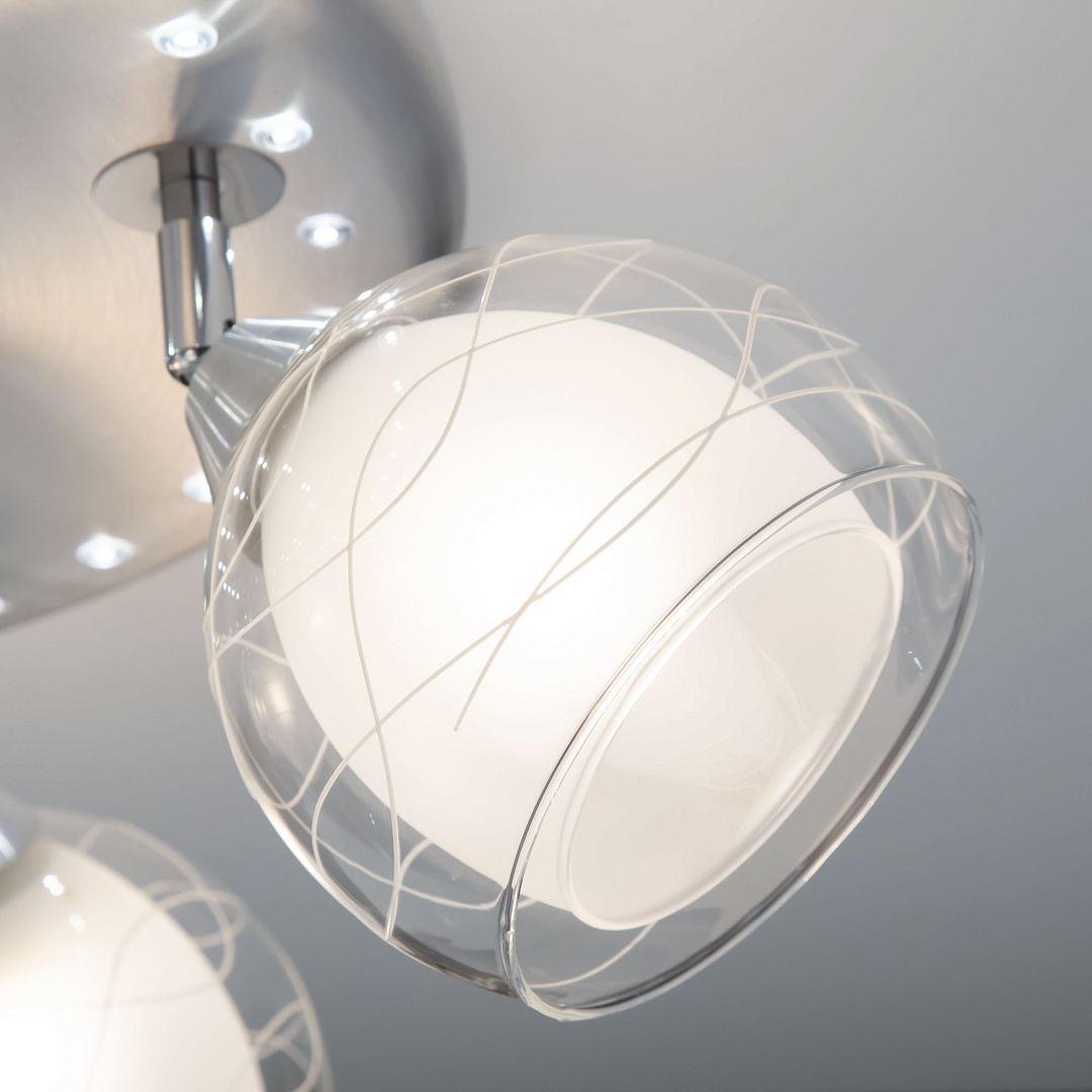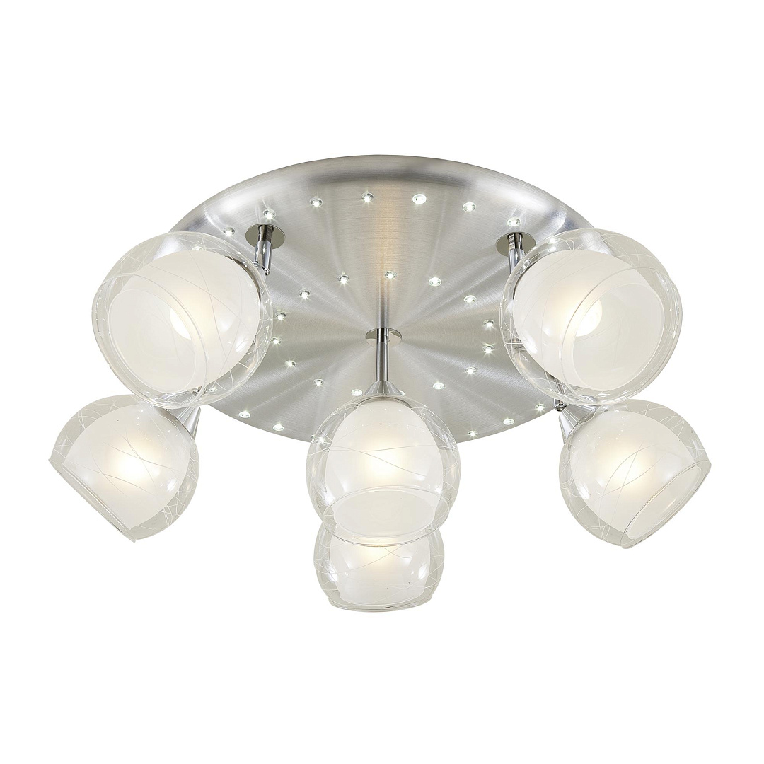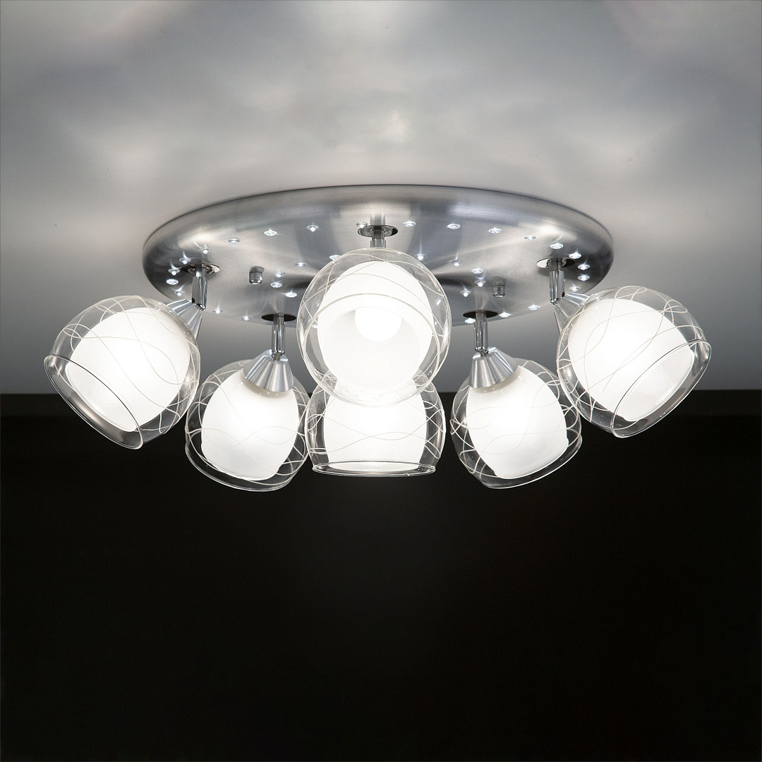 Потолочная люстра CL158162 датского производителя CITILUX из коллекции Самба выполнена в стиле модерн. Арматура светильника выполнена из металла цвета алюминий с хромом. Поверхность арматуры глянцевая. Плафон изготовлен из стекла прозрачного и белого цветов, имеет сферическую форму и матовую поверхность. Направлен в любую сторону. Осветительный прибор рассчитан на освещение пространства площадью 23 кв. м. Тип цоколя используемых ламп E27. Производитель рекомендует использовать лампы мощностью не более 75 Вт. Суммарная мощность светильника составляет 450 Вт. Лампочки в комплект не входят. Защита от попадания влаги и пыли внутрь изделия не предусмотрена. Рекомендуем к применению в гостиной, кабинете, прихожей, спальне.