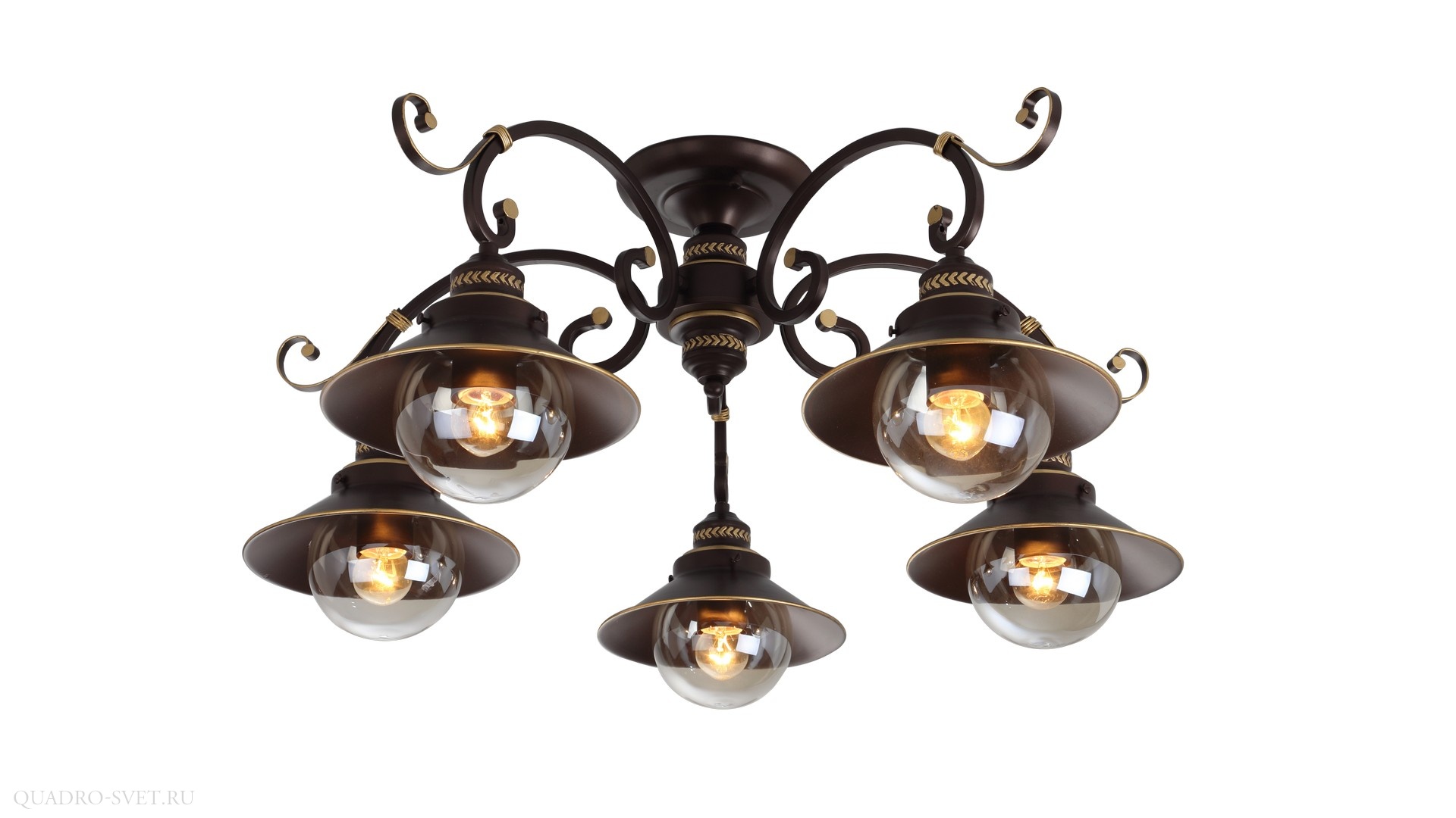 Потолочная люстра A4577PL-5CK итальянского производителя Arte Lamp из коллекции GRAZIOSO выполнена в стиле классика. Арматура светильника выполнена из металла шоколадного цвета. Поверхность арматуры матовая. Плафон изготовлен из стекла прозрачного цвета, имеет сферическую форму и прозрачную поверхность. Направлен вниз. Осветительный прибор рассчитан на освещение пространства площадью 15 кв. м. Тип цоколя используемых ламп E27. Производитель рекомендует использовать лампы мощностью не более 60 Вт. Суммарная мощность светильника составляет 300 Вт. Лампочки в комплект не входят. Защита от попадания влаги и пыли внутрь изделия не предусмотрена. Рекомендуем к применению в гостиной, кабинете, спальне.