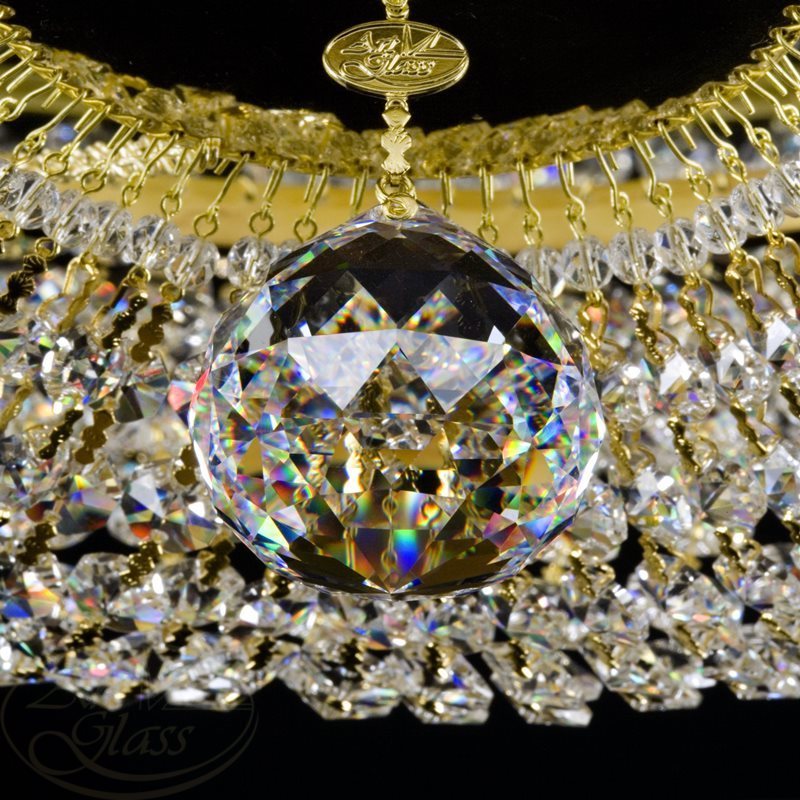 Хрустальный светильник в форме корзины, размерами 80 х 43 см с 15 лампочками и с хрустальными подвесками Crystal Exclusive или Swarovski Spectra. Хрустальные элементы вместе с мягко блестящими металлическими деталями гарантируют высокий блеск этого изделия. Корзина подходит к всем типам интерьеров - классическим и современным, и прекрасно комбинируется с другими типами освещения - потолочными или настенными хрустальными светильниками, настольными лампами или торшерами.