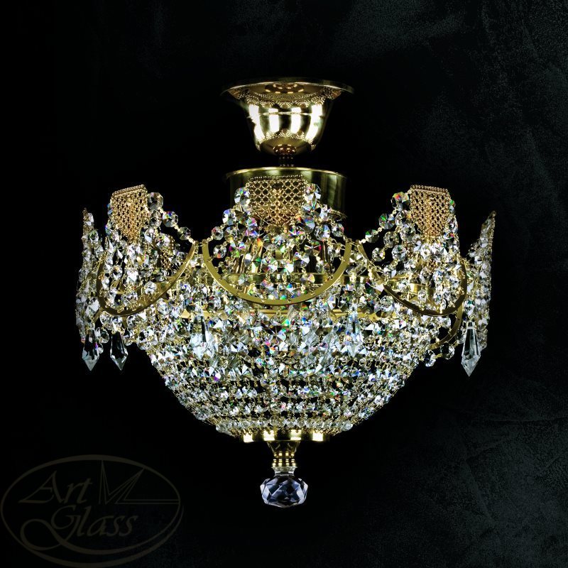 Хрустальный светильник в форме корзины, размерами 35 х 35 см с 3 лампочками и с хрустальными подвесками Crystal Exclusive или Swarovski Spectra. Хрустальные элементы вместе с мягко блестящими металлическими деталями гарантируют высокий блеск этого изделия. Корзина подходит к всем типам интерьеров - классическим и современным, и прекрасно комбинируется с другими типами освещения - потолочными или настенными хрустальными светильниками, настольными лампами или торшерами.
