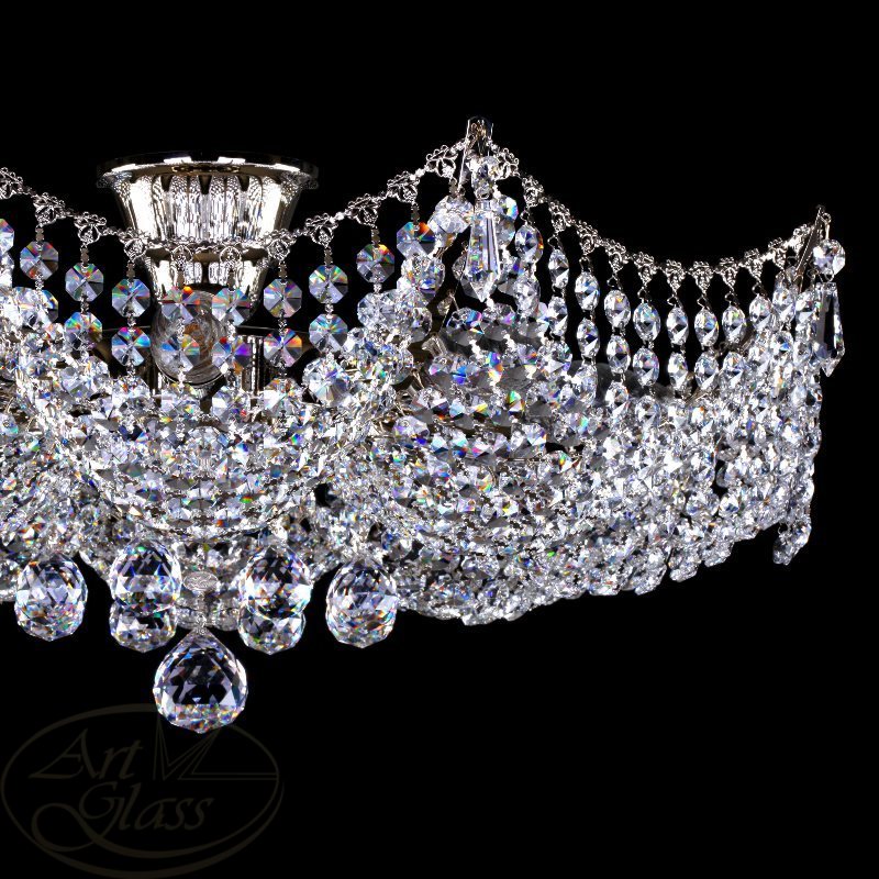 Хрустальный светильник в форме корзины, размерами 54 х 43 см с 8 лампочками и с хрустальными подвесками Crystal Exclusive или Swarovski Spectra. Хрустальные элементы вместе с мягко блестящими металлическими деталями гарантируют высокий блеск этого изделия. Корзина подходит к всем типам интерьеров - классическим и современным, и прекрасно комбинируется с другими типами освещения - потолочными или настенными хрустальными светильниками, настольными лампами или торшерами.