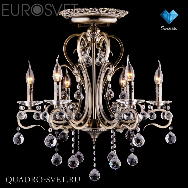 Потолочная люстра 12505/6 античная бронза Strotskis от производителя Eurosvet (КНР) из коллекции Ernin исполнена в классическом стиле. Арматура светильника выполнена из