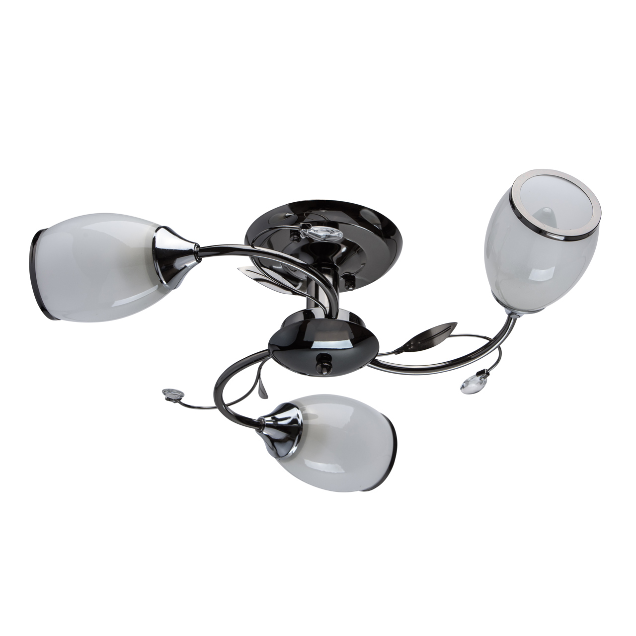 Потолочная люстра 677011903 немецкого производителя DeMarkt из коллекции Грация выполнена в стиле модерн. Арматура светильника выполнена из металла черного и хромового цветов. Поверхность арматуры глянцевая. Плафон изготовлен из стекла белого цвета, имеет овальную форму и матовую поверхность. Направлен в стороны. Осветительный прибор рассчитан на освещение пространства площадью 9 кв. м. Тип цоколя используемых ламп E27. Производитель рекомендует использовать лампы мощностью не более 60 Вт. Суммарная мощность светильника составляет 180 Вт. Лампочки в комплект не входят. Защита от попадания влаги и пыли внутрь изделия не предусмотрена. Рекомендуем к применению в гостиной, кабинете, спальне.