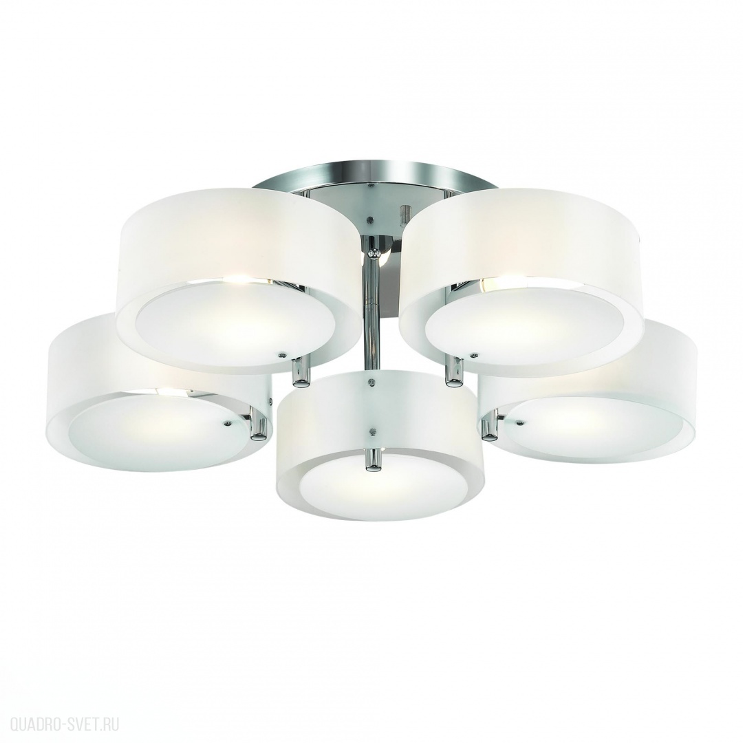 Потолочная люстра SL483.502.05 итальянского производителя ST Luce из коллекции FORESTA исполнена в стиле модерн. Арматура светильника выполнена из металла цвета хром. Поверхность арматуры глянцевая. Плафон изготовлен из акрила и стекла белого цвета, имеет цилиндрическую форму и матовую поверхность. Направлен вниз. Осветительный прибор рассчитан на освещение пространства площадью 15 кв. м. Тип цоколя используемых ламп E27. Производитель рекомендует использовать лампы мощностью не более 60 Вт. Суммарная мощность светильника составляет 300 Вт. Лампочки в комплект не входят. Защита от попадания влаги и пыли внутрь изделия не предусмотрена. Рекомендуем к применению в гостиной, кабинете, спальне.