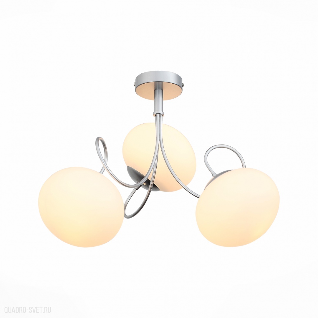 Потолочная люстра SL717.502.03 итальянского производителя ST Luce из коллекции ACINI исполнена в современном стиле. Арматура светильника выполнена из металла серебристого цвета. Поверхность арматуры матовая. Плафон изготовлен из стекла белого цвета, имеет сферическую форму и матовую поверхность. Направлен в стороны и вниз. Осветительный прибор рассчитан на освещение пространства площадью 6 кв. м. Тип цоколя используемых ламп E27. Производитель рекомендует использовать лампы мощностью не более 40 Вт. Суммарная мощность светильника составляет 120 Вт. Лампочки в комплект не входят. Защита от попадания влаги и пыли внутрь изделия не предусмотрена. Рекомендуем к применению в гостиной, кабинете, спальне.