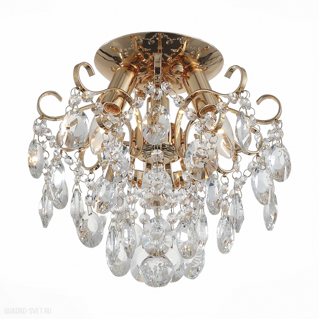 Хрустальная потолочная люстра SL846.202.03 итальянского производителя ST Luce из коллекции ORECCHINI исполнена в стиле модерн. Арматура светильника выполнена из металла золотого цвета. Поверхность арматуры глянцевая. Плафон изготовлен из хрусталя и стекла прозрачного цвета. с глянцевой поверхностью. Декоративные элементы выполнены из хрусталя. Осветительный прибор рассчитан на освещение пространства площадью 6 кв. м. Тип цоколя используемых ламп E14. Производитель рекомендует использовать лампы мощностью не более 40 Вт. Суммарная мощность светильника составляет 120 Вт. Лампочки в комплект не входят. Защита от попадания влаги и пыли внутрь изделия не предусмотрена. Рекомендуем к применению в гостиной, кабинете, спальне.