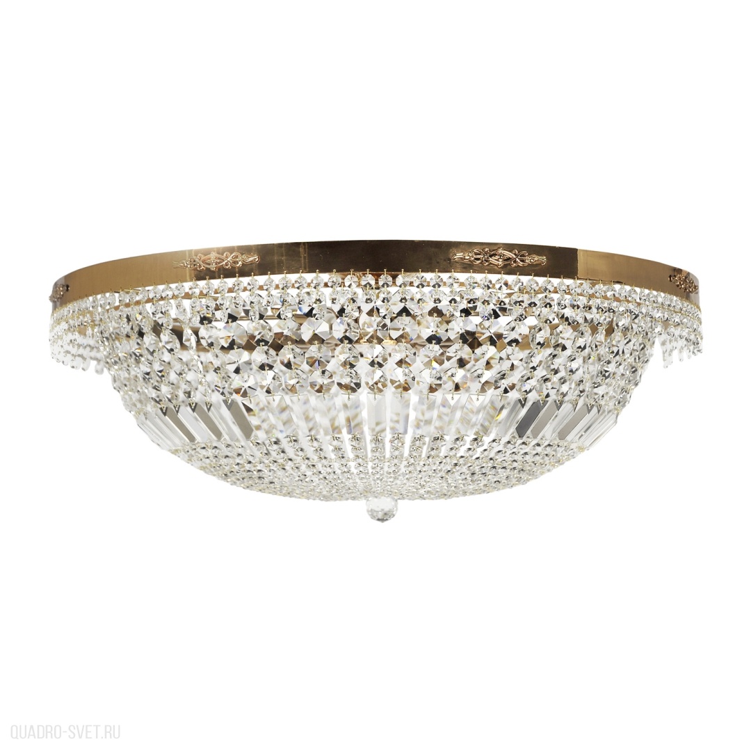 латуни золотого цвета. Поверхность арматуры матовая. Плафон изготовлен из хрусталя прозрачного цвета. с глянцевой поверхностью. Декоративные элементы выполнены из прозрачного хрусталя. Осветительный прибор рассчитан на освещение пространства площадью 30 кв. м. Тип цоколя используемых ламп E27. Производитель рекомендует использовать лампы мощностью не более 60 Вт. Суммарная мощность светильника составляет 600 Вт. Лампочки в комплект не входят. Защита от попадания влаги и пыли внутрь изделия не предусмотрена. Рекомендуем к применению в гостиной, кабинете, прихожей, спальне.