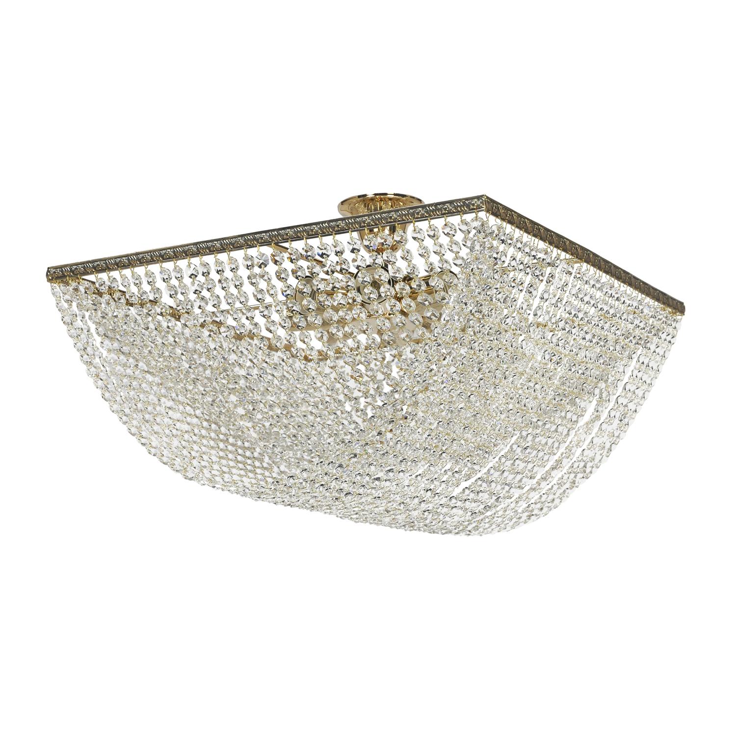 металла золотого цвета. Поверхность арматуры глянцевая. Плафон изготовлен из хрусталя прозрачного цвета. с глянцевой поверхностью. Декоративные элементы выполнены из прозрачного хрусталя. Осветительный прибор рассчитан на освещение пространства площадью 24 кв. м. Тип цоколя используемых ламп E27. Производитель рекомендует использовать лампы мощностью не более 60 Вт. Суммарная мощность светильника составляет 480 Вт. Лампочки в комплект не входят. Защита от попадания влаги и пыли внутрь изделия не предусмотрена. Рекомендуем к применению в гостиной, кабинете, спальне.