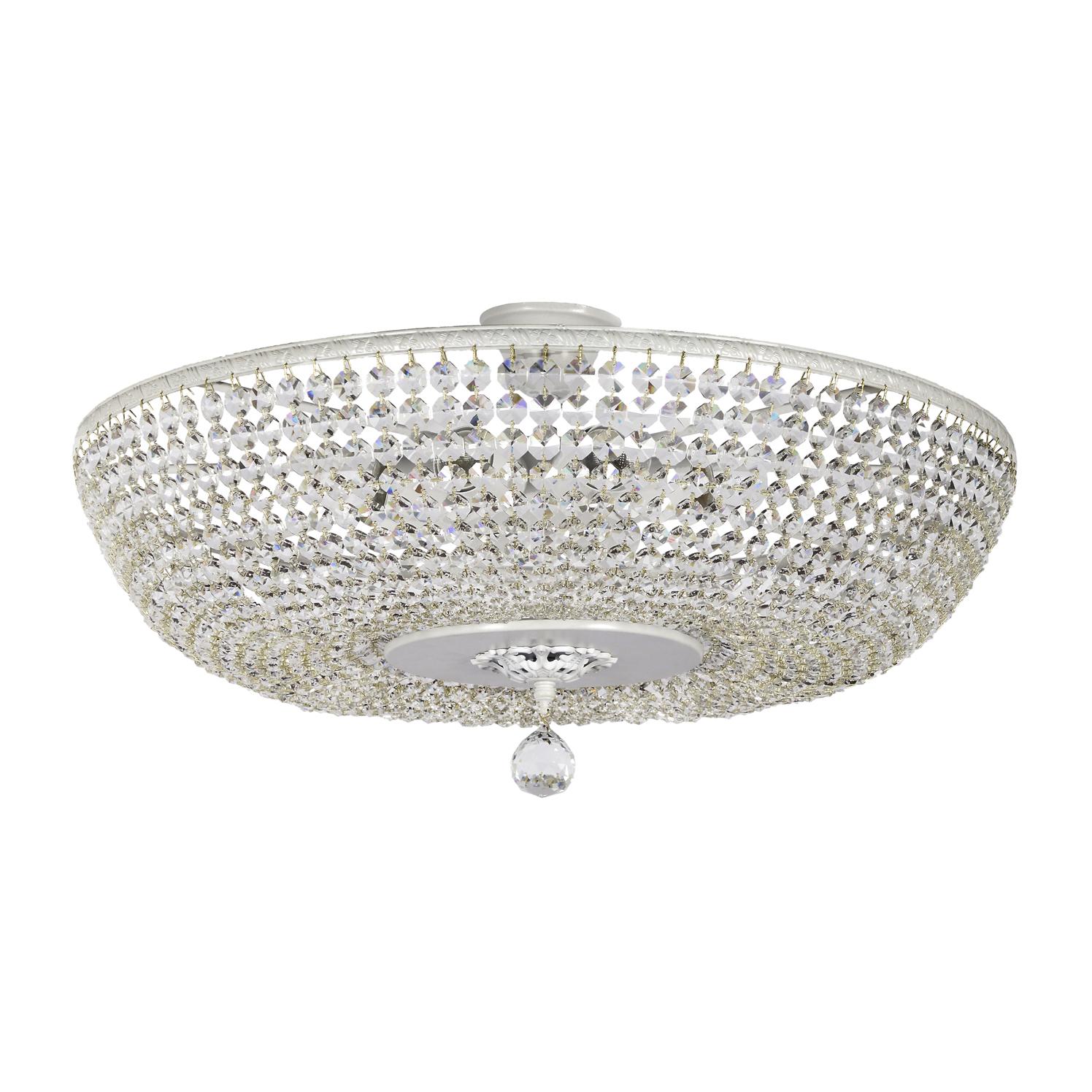 металла белого цвета. Поверхность арматуры глянцевая. Плафон изготовлен из хрусталя прозрачного цвета. с глянцевой поверхностью. Декоративные элементы выполнены из прозрачного хрусталя. Осветительный прибор рассчитан на освещение пространства площадью 24 кв. м. Тип цоколя используемых ламп E27. Производитель рекомендует использовать лампы мощностью не более 60 Вт. Суммарная мощность светильника составляет 480 Вт. Лампочки в комплект не входят. Защита от попадания влаги и пыли внутрь изделия не предусмотрена. Рекомендуем к применению в гостиной, кабинете, спальне.