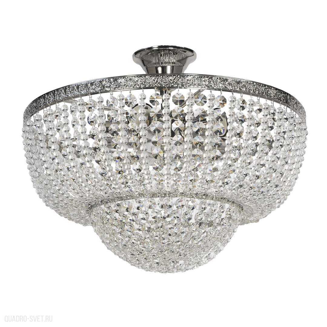 латуни цвета никель. Поверхность арматуры глянцевая. Плафон изготовлен из хрусталя прозрачного цвета. с глянцевой поверхностью. Декоративные элементы выполнены из прозрачного хрусталя. Осветительный прибор рассчитан на освещение пространства площадью 15 кв. м. Тип цоколя используемых ламп E27. Производитель рекомендует использовать лампы мощностью не более 60 Вт. Суммарная мощность светильника составляет 300 Вт. Лампочки в комплект не входят. Защита от попадания влаги и пыли внутрь изделия не предусмотрена. Рекомендуем к применению в гостиной, кабинете, спальне.